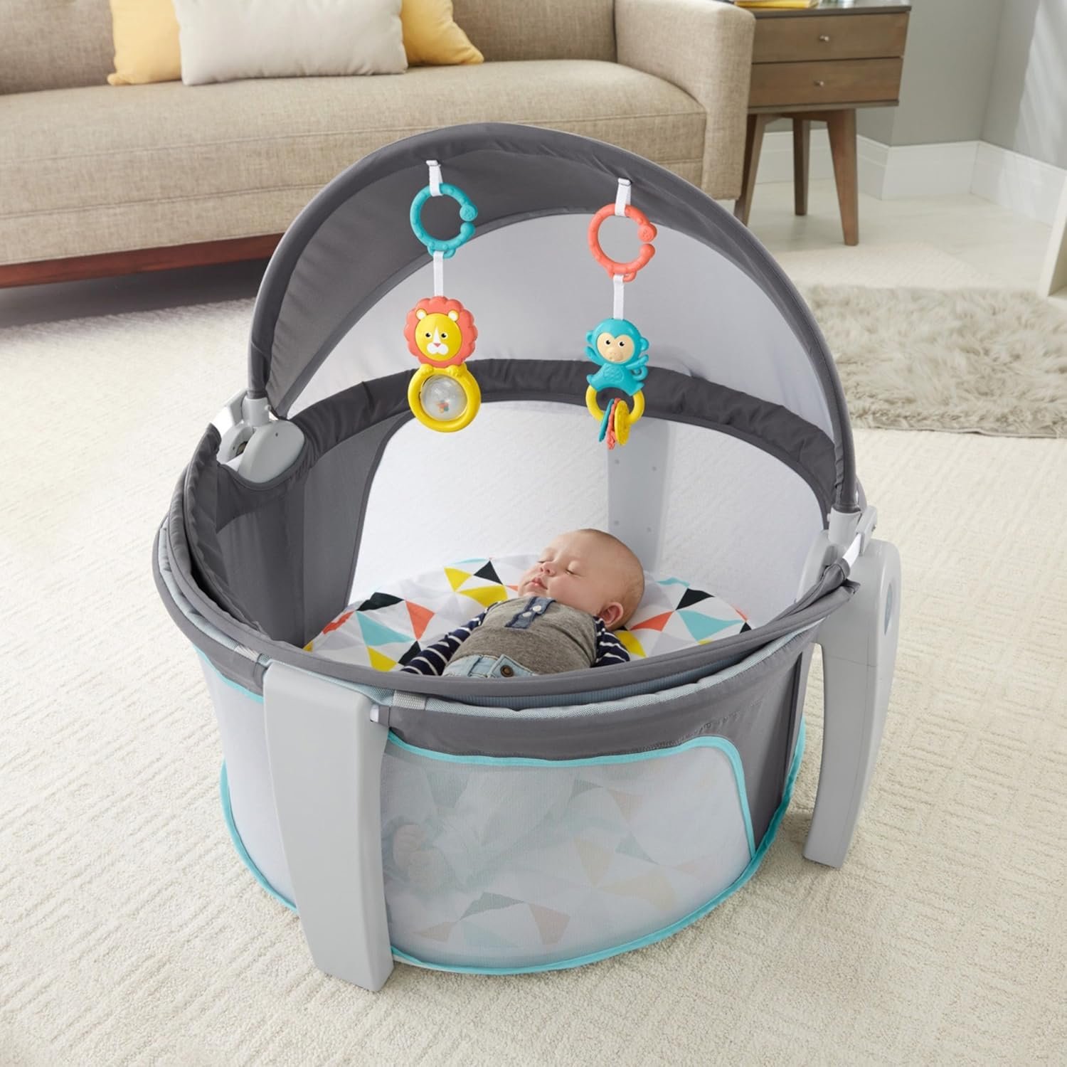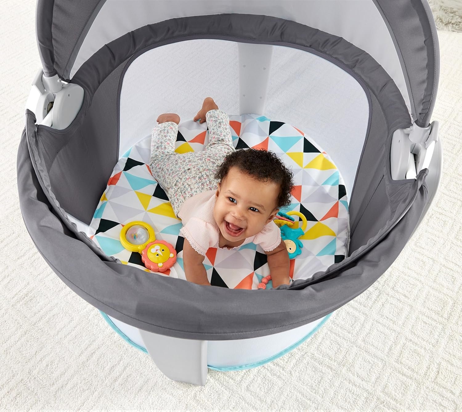 Fisher-Price Portable Bassinet On-The-Go Baby Dome, Travel Play Space with Developmental Newborn Toys & Canopy, Windmill