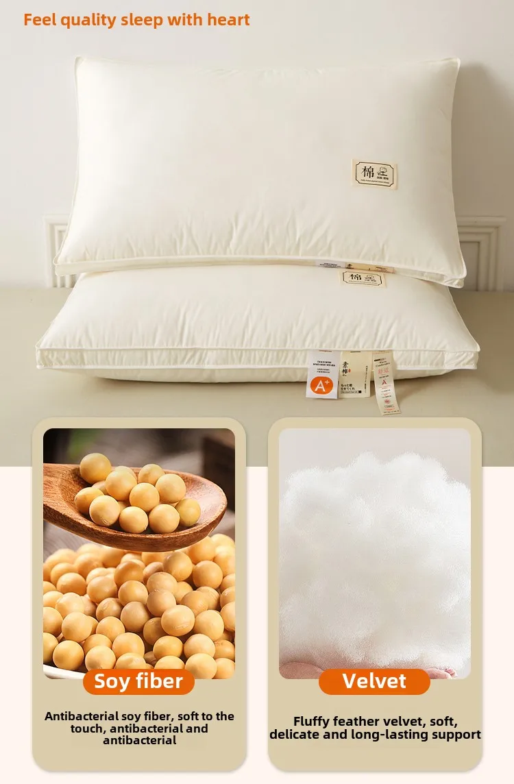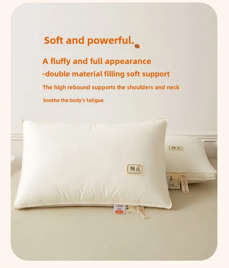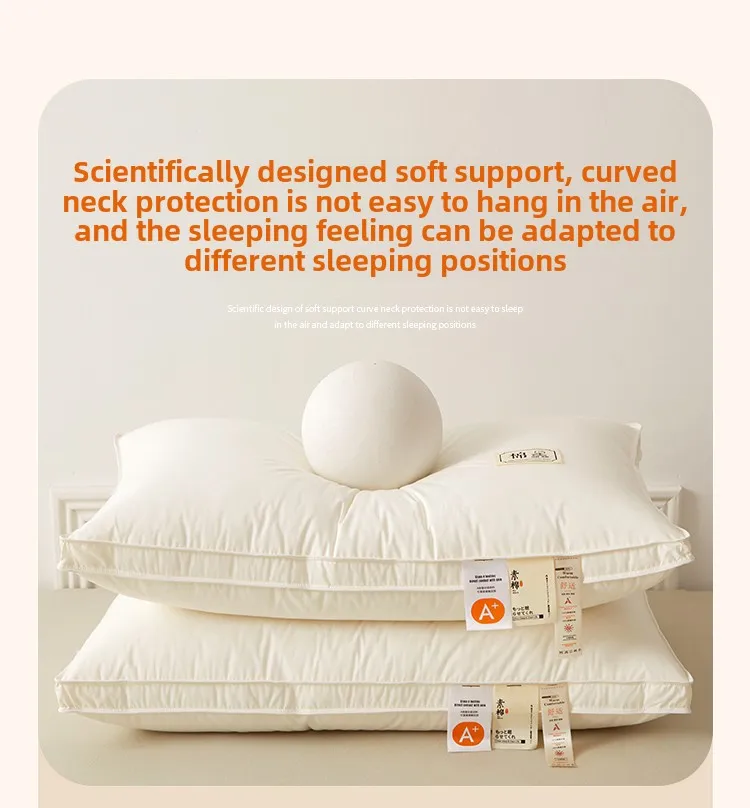 Five Star Hotel Pillow 48x74cm Pillow Core for Home Deep Sleep Neck Protection Without Collapsing Velvet Fiber Breathable Pillow