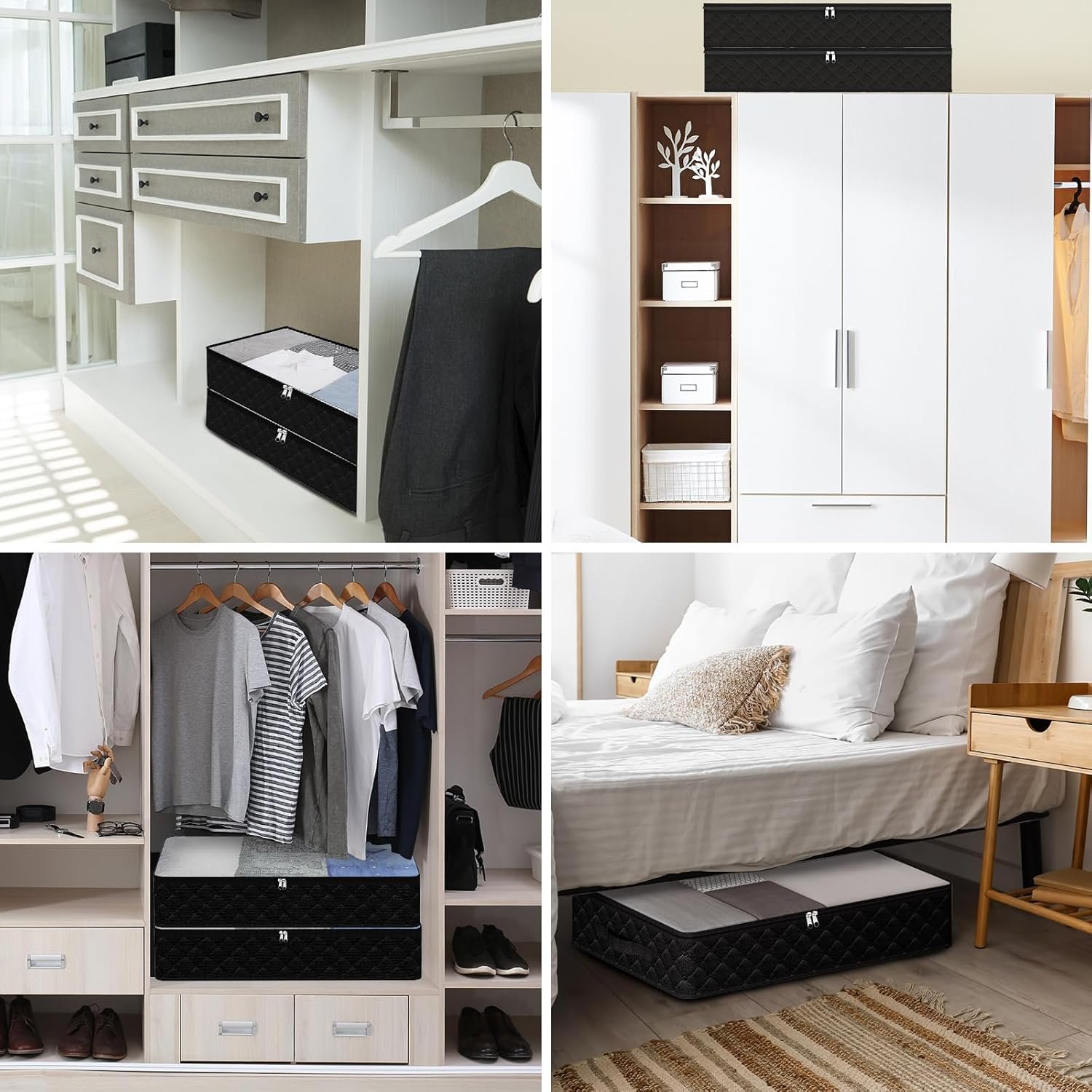 Fixwal Black Underbed Storage Bags with Clear Window and 2 Reinforced Handles Under Bed Storage Containers for Clothing, Bedding, Comforter (2 Pack)