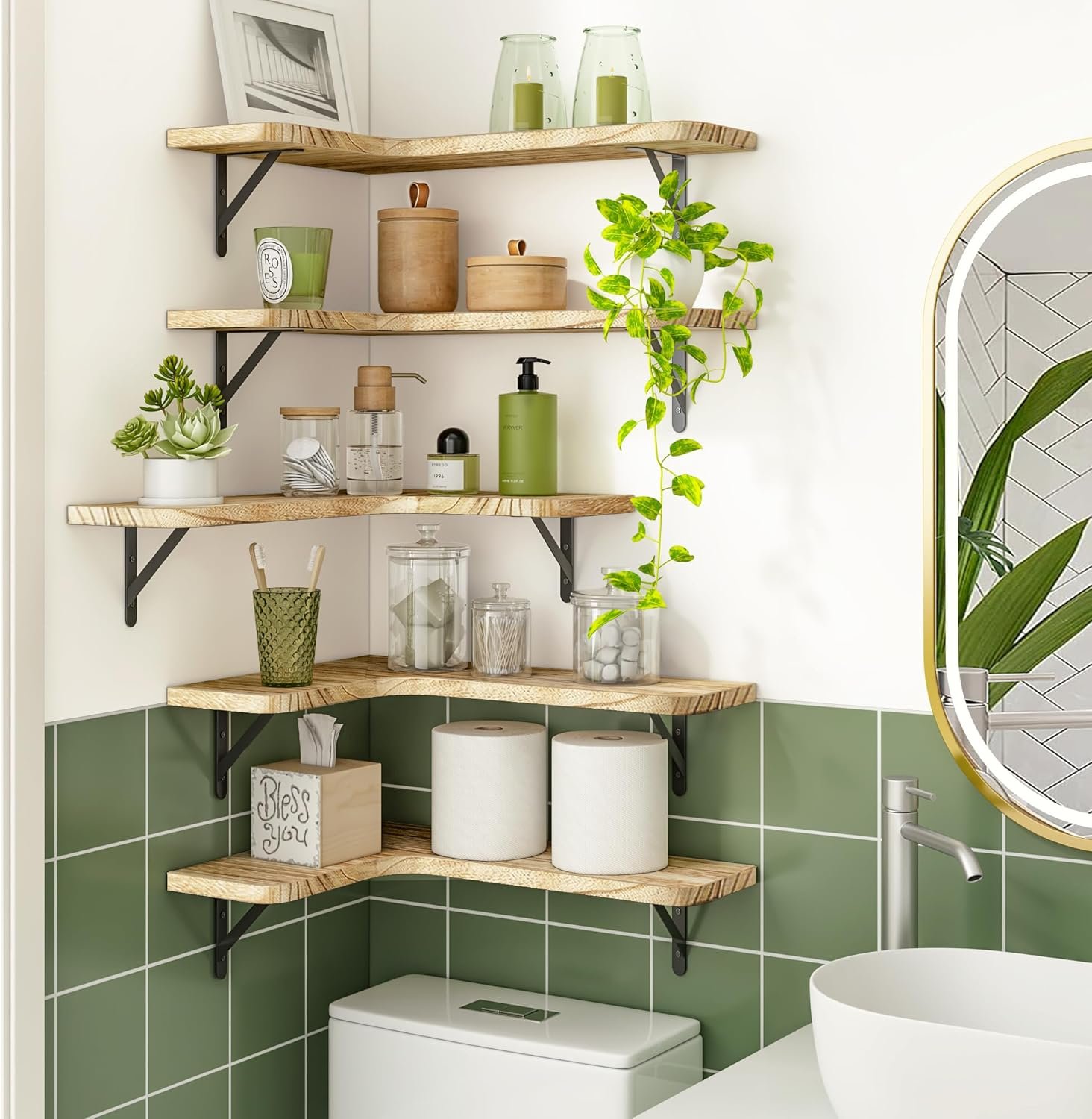 【Multi-Functional Shelves】- Our product is an satisfactory choice for all kinds of spaces. You can organize seasoning bottles, dishes, cups, and hang utensils in the kitchen; store personal hygiene products and hang towels in the bathroom; display plants, trophies, collectibles, books, and photos, in the living room The corner shelves will help your home get more organized and cozier.