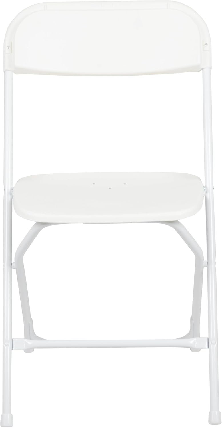 Always be ready for your next event or get-together with this set of 10 folding chairs. Whether you’re hosting a game night or catering event, planning weddings or business meetings, or organizing a school function, these white folding plastic chairs offer a reliable, on-demand seating solution for commercial or home use. The textured and contoured plastic seats with dry-assist drainage holes prevent water pooling in the event of rain. Made for portability and ease of use, the plastic chairs have an ultra-lightweight design and feature floor caps that protect flooring surfaces. The chairs can also be nested horizontally for a stack quantity of up to 50 chairs high from the floor or vertically in closets or sheds. With a combination of double-support braces and 18-gauge steel frames, these small folding chairs support up to 650 pounds of static weight and withstand years of quality use at indoor or outdoor events. Each event chair measures 17.5″ W x 18″ D x 31.5″ H open with a 15.5″ W x 15.5″ D x 17.75″ H seat, 17.5″ W x 15.5″ H back, and 17.5″ W x 2.5″ D x 38.25″ H folded with no assembly required.