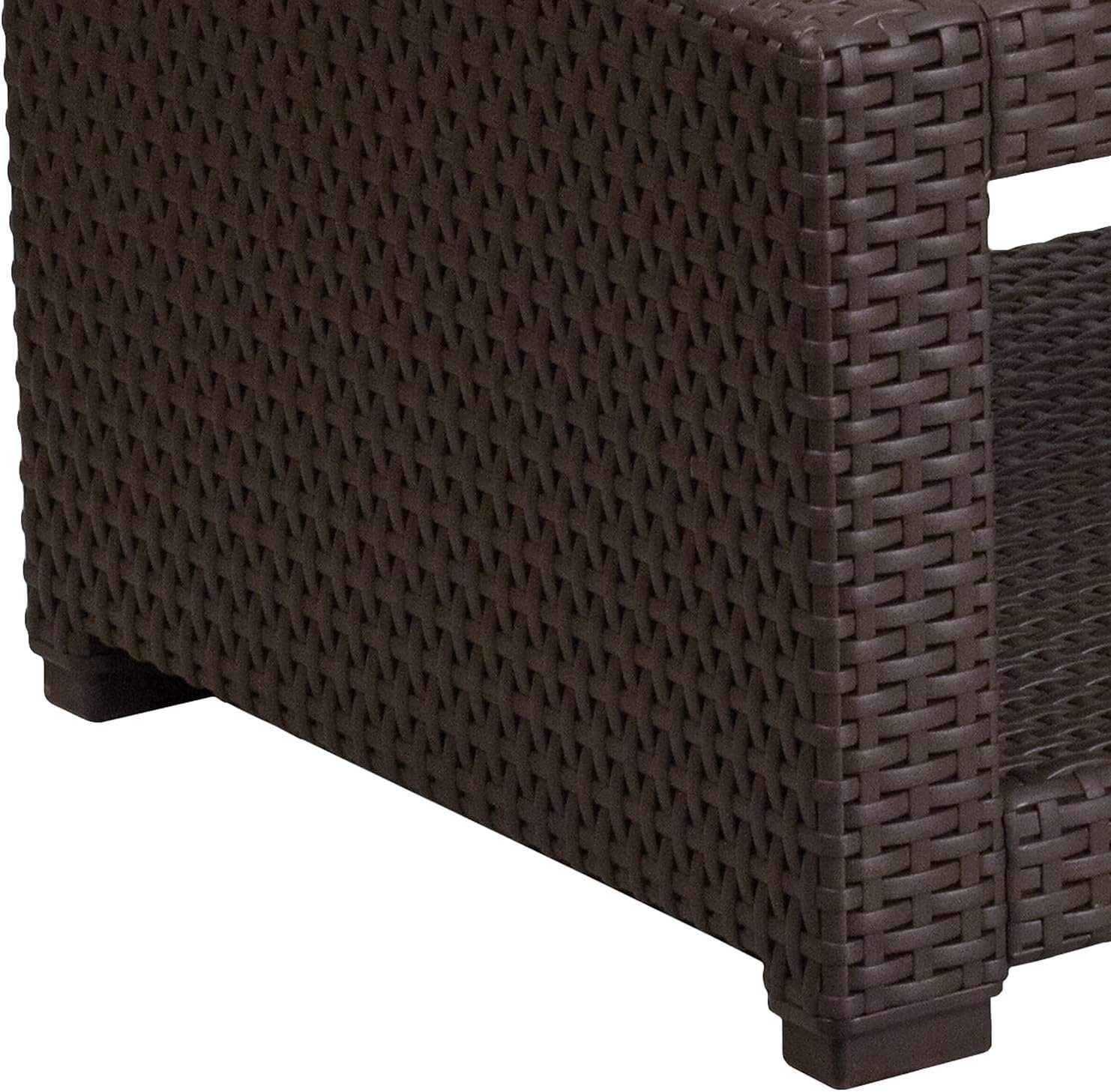 Flash Furniture Seneca Indoor/Outdoor Chocolate Brown Faux Rattan Coffee Table with Open Storage