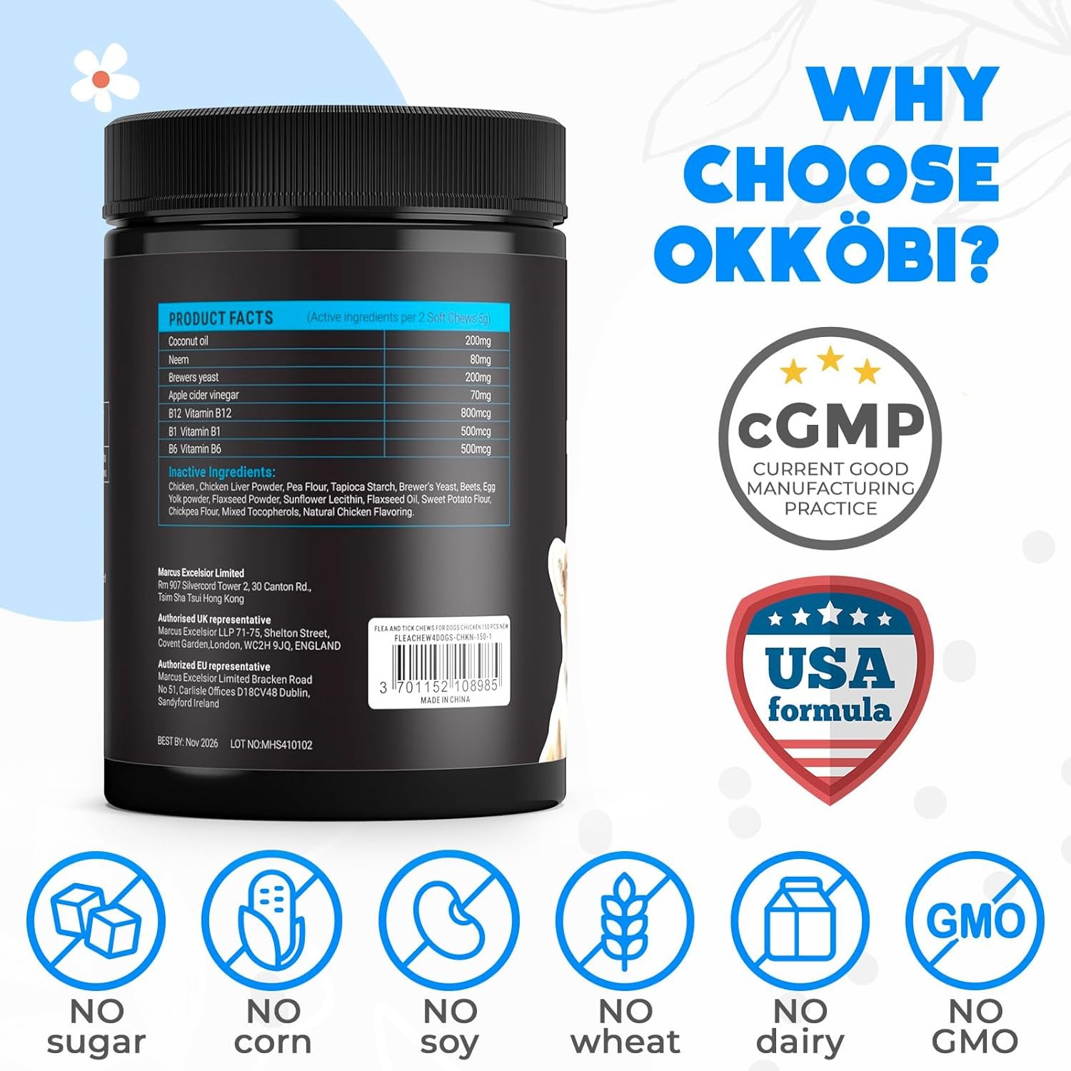 🕐 FAST-ACTING, LONG-LASTING: Our chews start working within 30-45 minutes, providing up to 24 hours of protection. Perfect for those moments when your dogs want to play outside, ensuring they can fully enjoy their day without any discomfort.