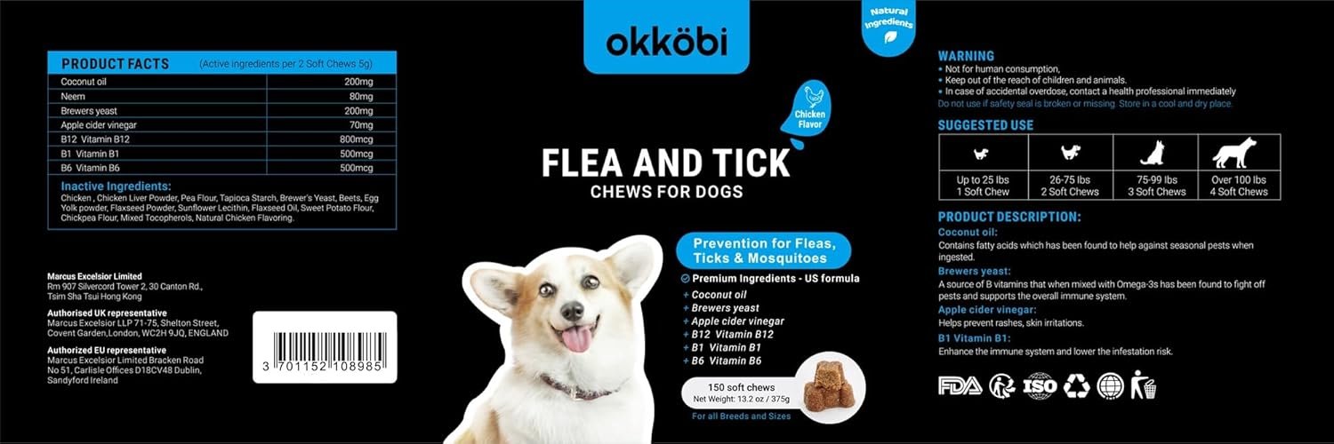 🦴 DELICIOUS FLAVORS DOGS LOVE: Available in chicken, beef, and duck flavors, these flea and tick prevention chews are not just effective but tasty too. No more wrestling with your pup to take their dog treatment; they’ll be begging for more of these delicious treats!