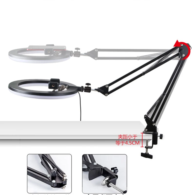 Flexible Overhead Tripod for Phone Smartphone with Ring Light Desk Cellphone Folding Mobile Stand for Video Recording Filming