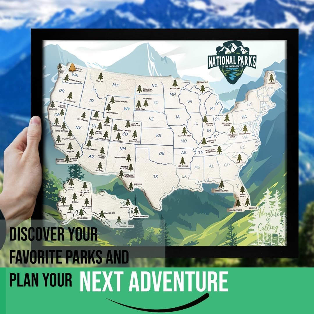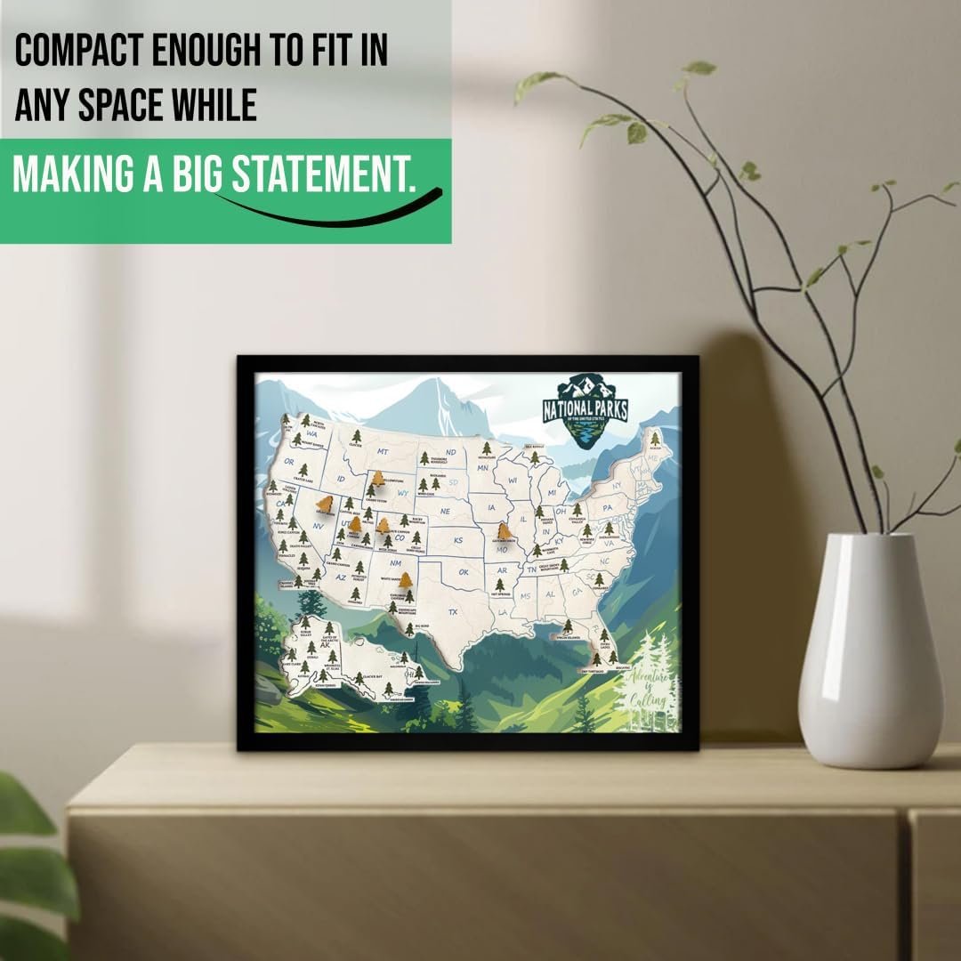 The perfect choice: Whether you’re mapping out your next adventure or looking for a stunning wall piece that tells a story, it is your ultimate guide to planning an unforgettable National Park road trip! Our US National Park Push Pin Map is the perfect way to track your visits to our beautiful National Parks!