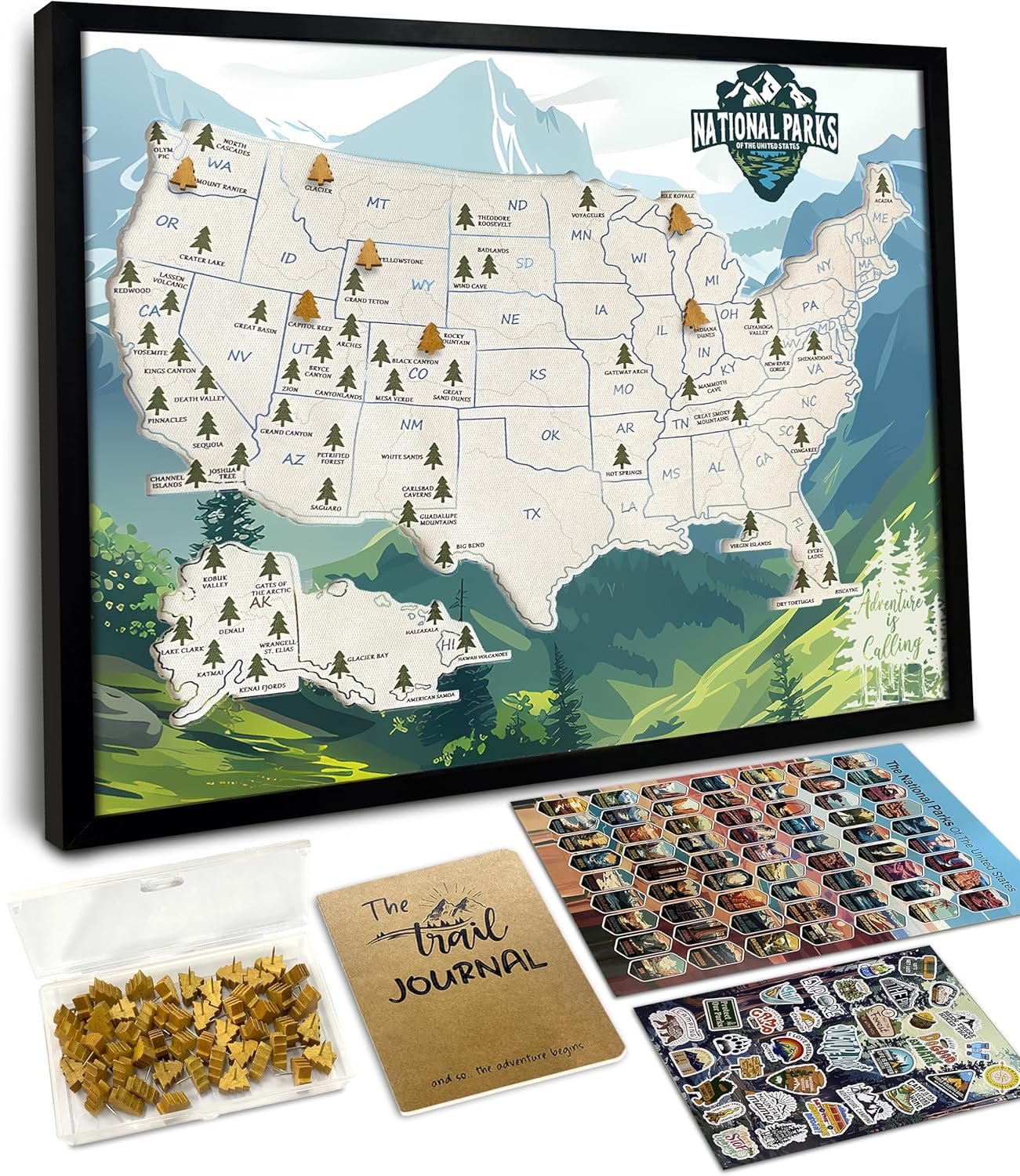 How many national parks have you CONQUERED? Track your adventures and decorate your walls with our Framed National Park map, featuring a beautiful laser-cut acrylic design, high-quality canvas, and cork backing. It’s a fun and unique gift perfect for couples and families!