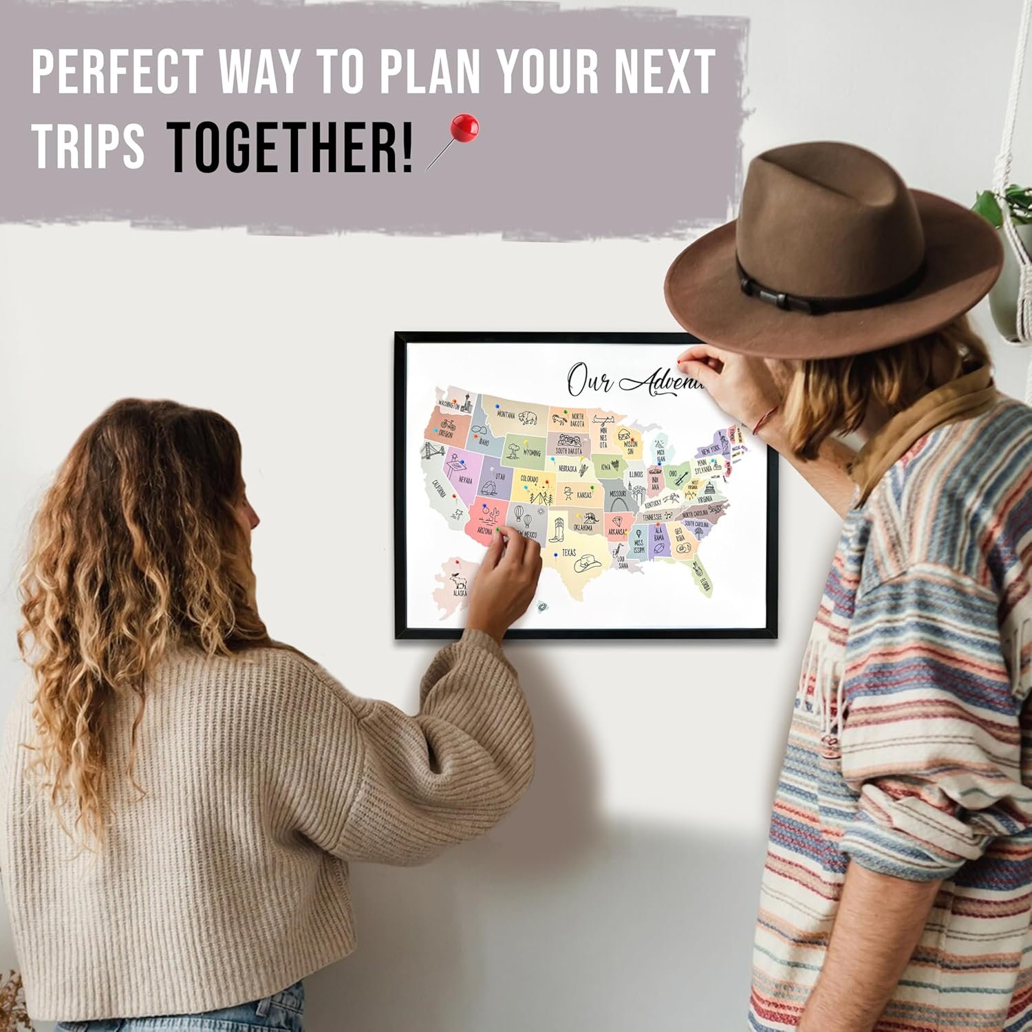flinelife Usa Travel Map With Pins, 12X10, Our Adventures Travel Pin Board, 50 States Map, Perfect For Couples Gift