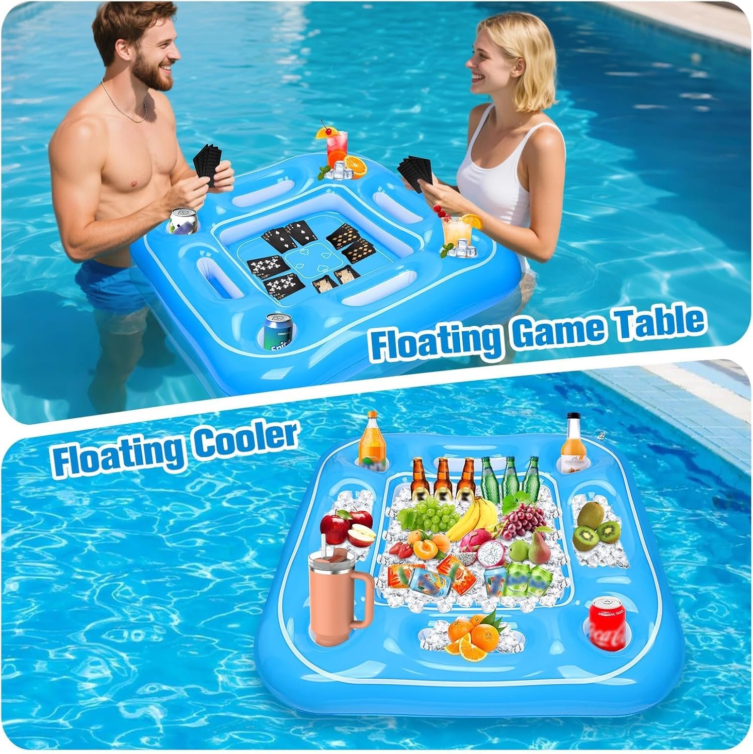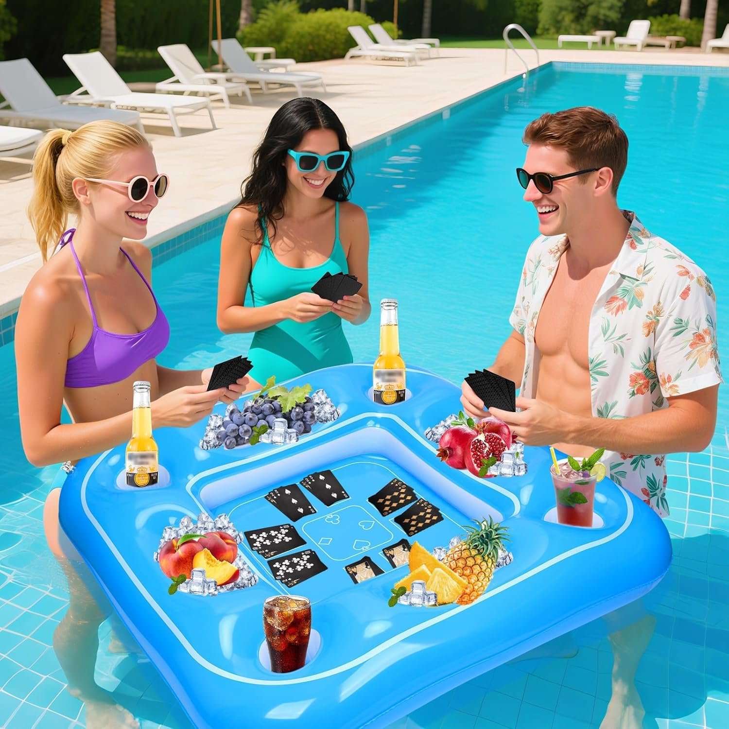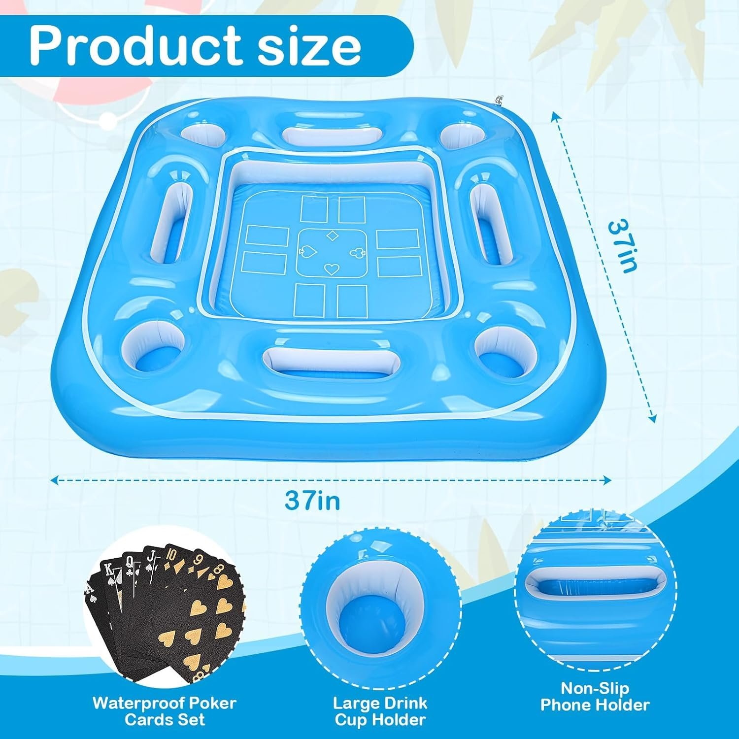 ✔️Floating Game Table& Pool Tray – Floating card table comes with a set of waterproof cards, allows you to play games and enjoy drinks in the pool without leaving.And our inflatable game table serves as a pool tray for fruit, beer, and juice. This floating game table drink& phone holders, you’ve got everything you need for a perfect day in the water.