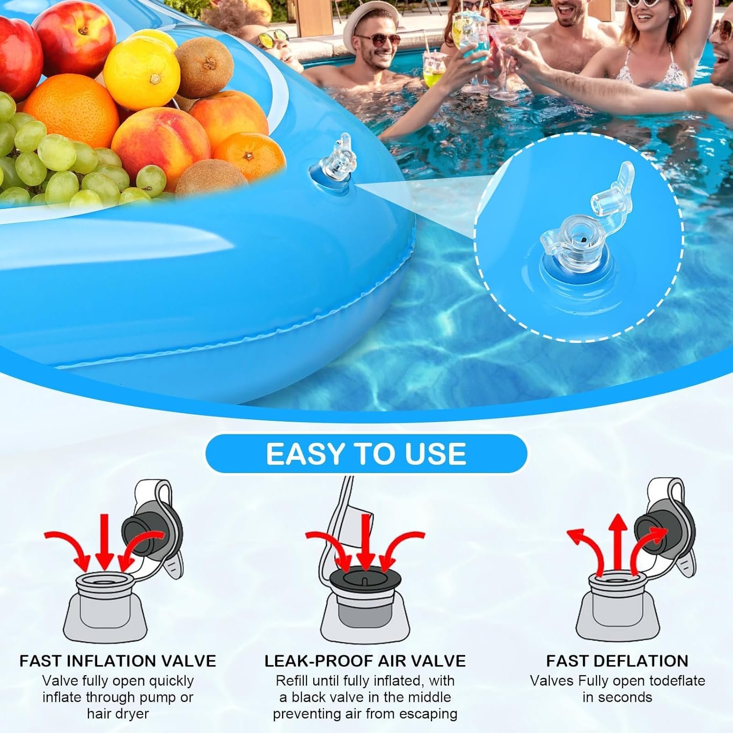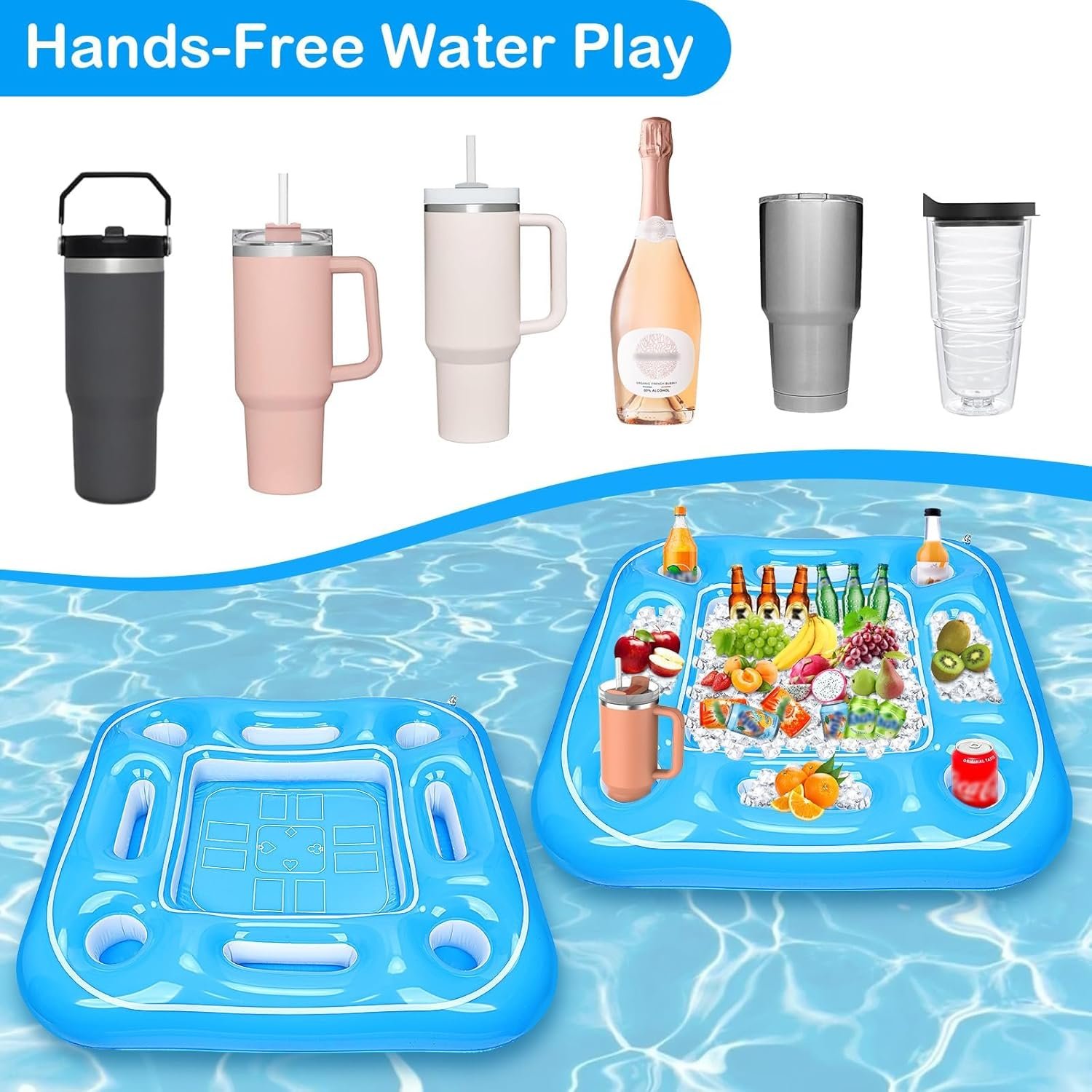 ✔️Large Enough Tray Space -The floating game table for pool’s interior measures 17.5 x 17.5 inches, providing plenty of space for storing ice or delicious foods, beverages and snacks. Plus, inflatable floating game table has a big surface area, which is perfect for playing games with friends and family in the pool.