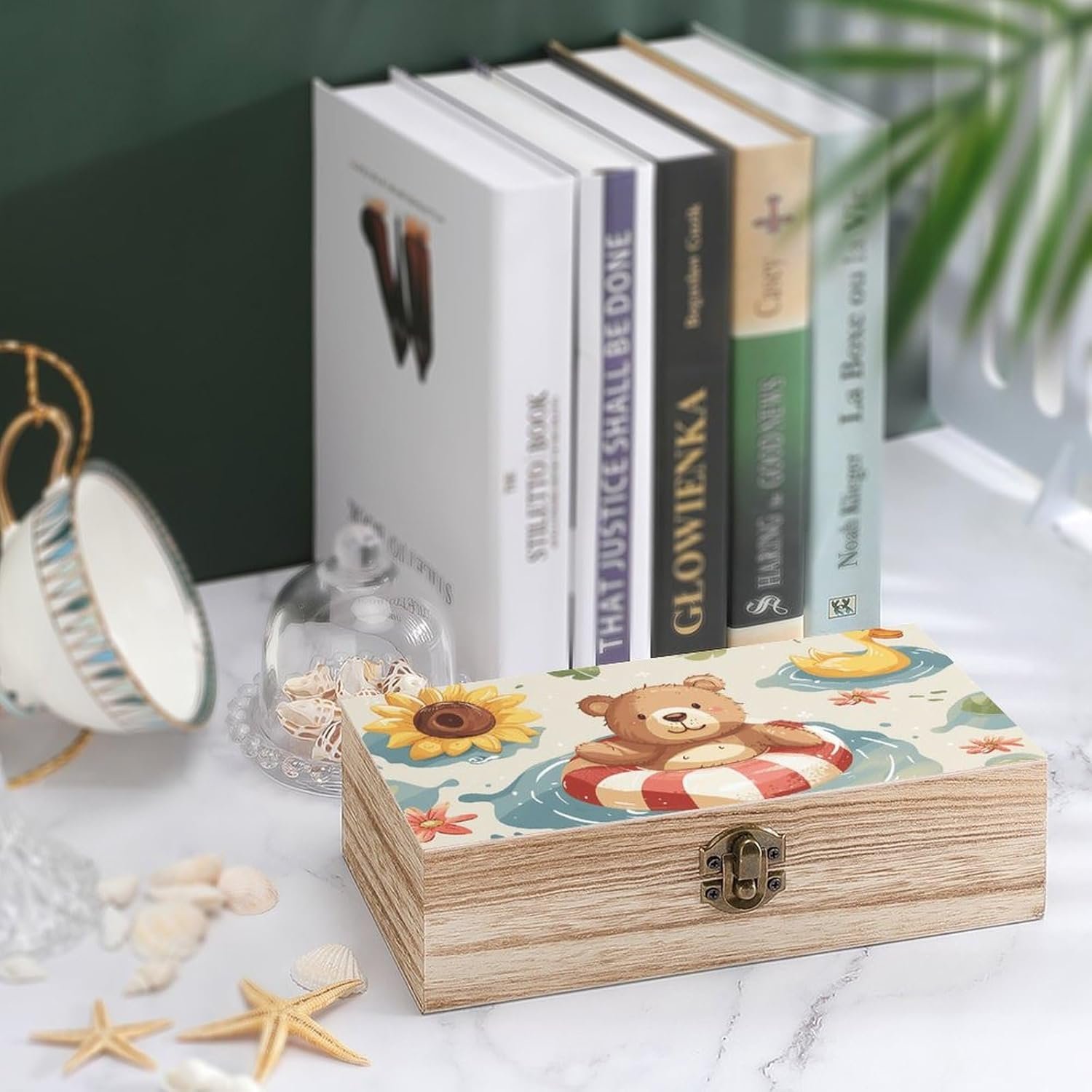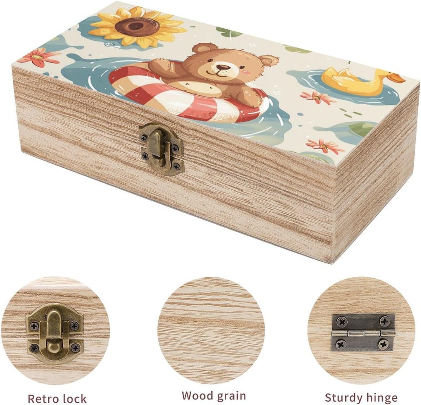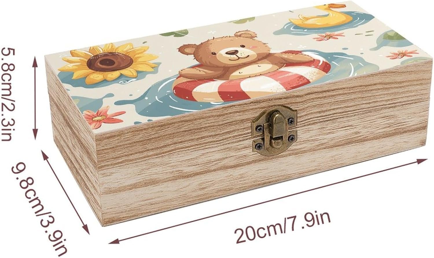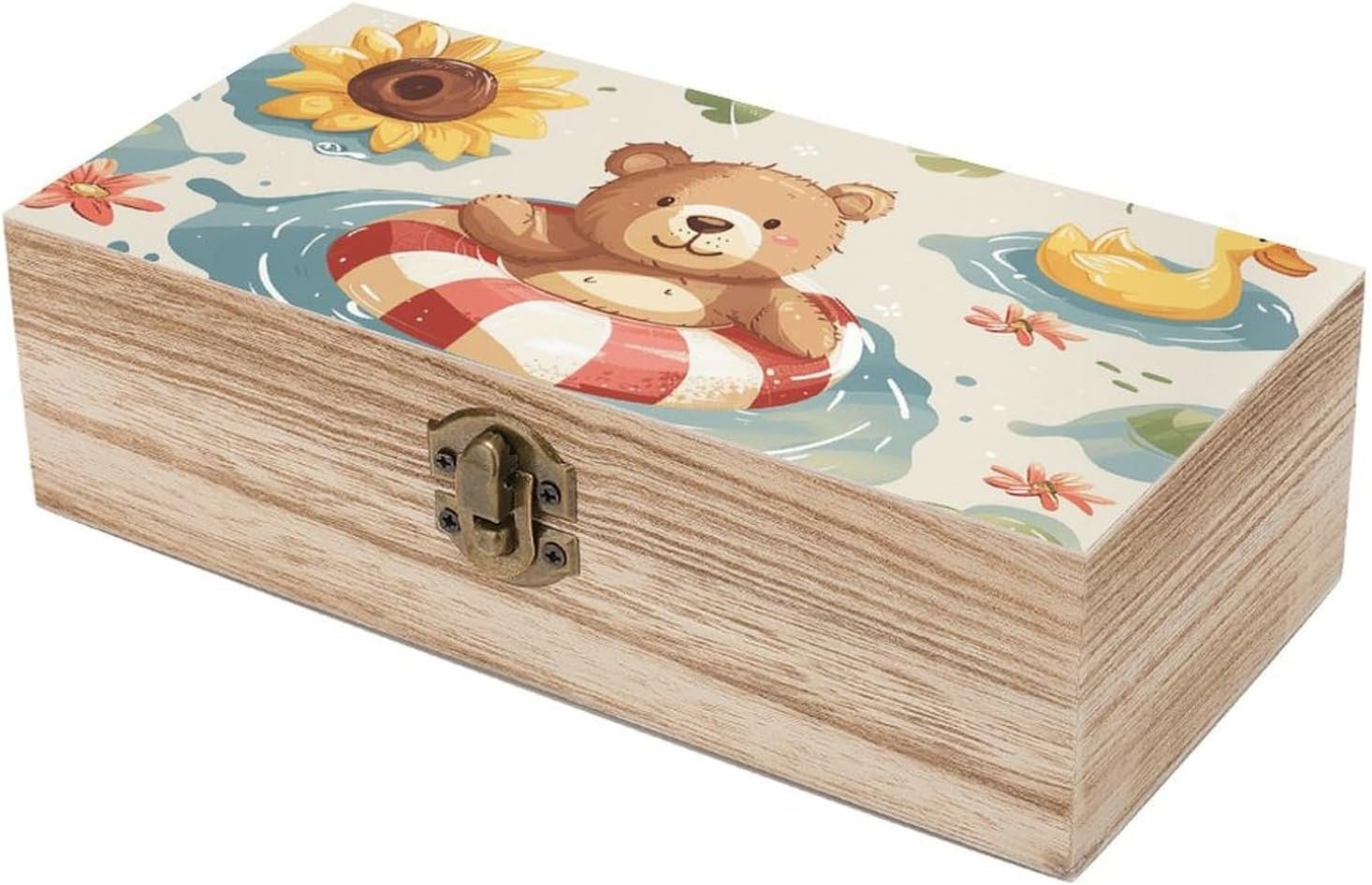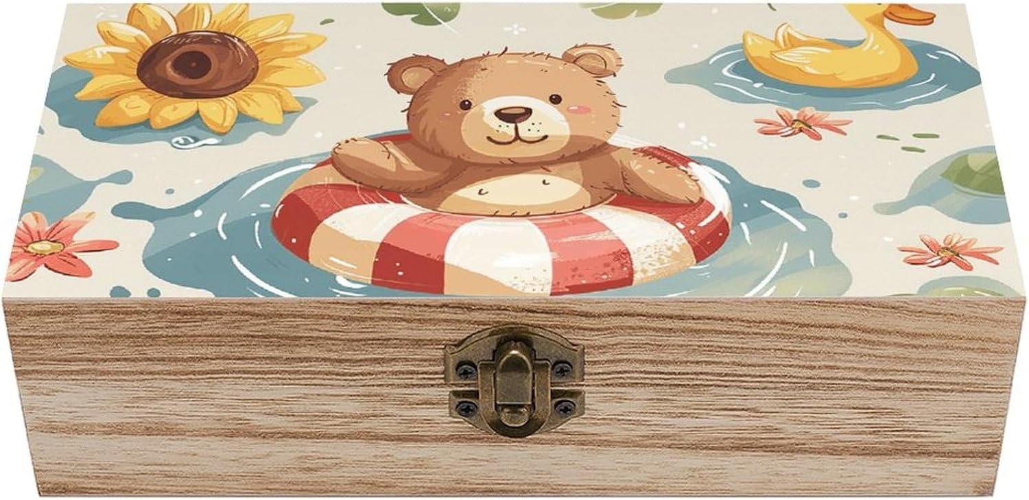 Floating in The Pool Storage Box Large Wooden Jewelry Box with Hinged Lid And Front Clasp Wooden Storage Bins Keepsake Box Office Desk Organizer