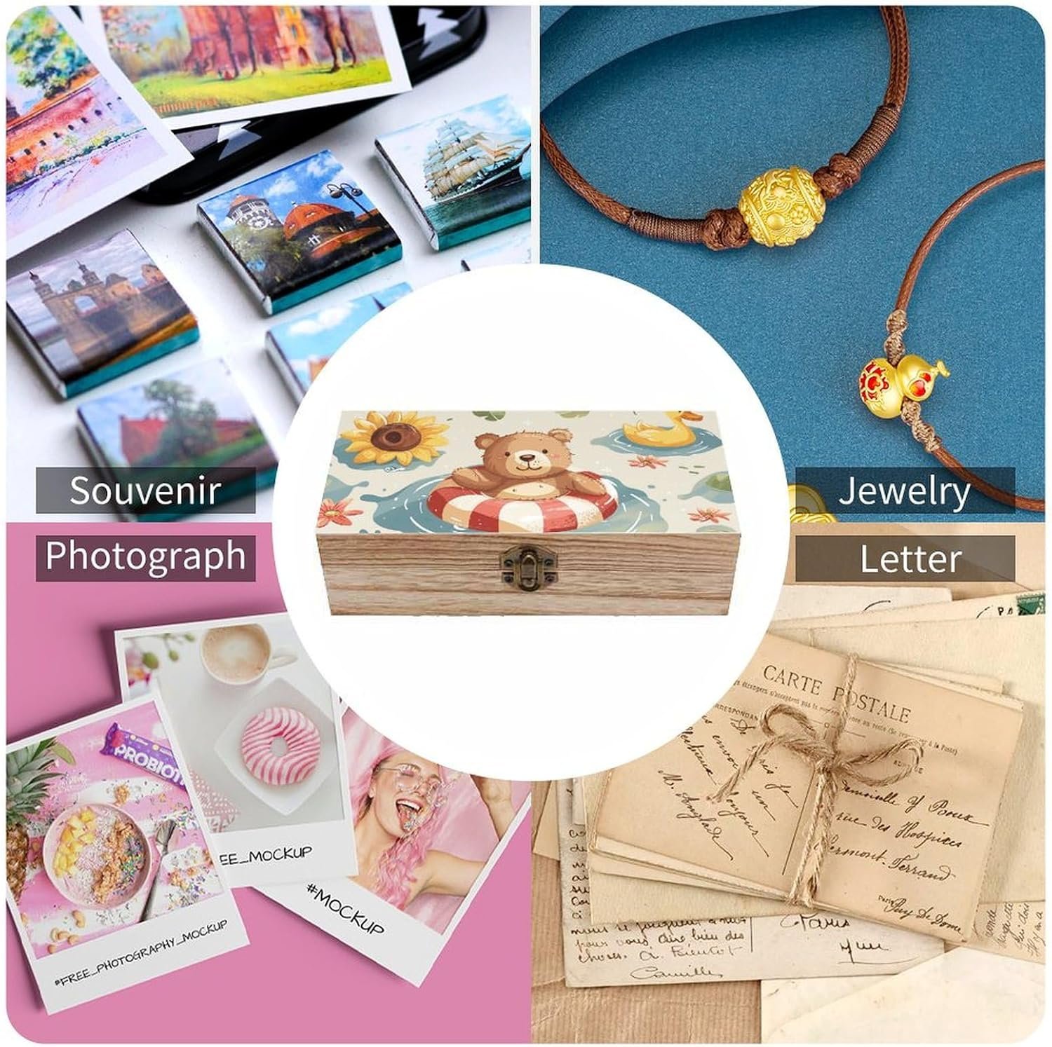 Multi-Use: This keepsakes storage box is ideal for organizing small items such as keepsakes, cosmetics, jewelry, accessories, handicrafts, keys, cards, photos, letters, office supplies and more. Equipped with hinged lid and front clasp to make your items are safely stored and prevent it from dust and damage, protecting every memory of yours
