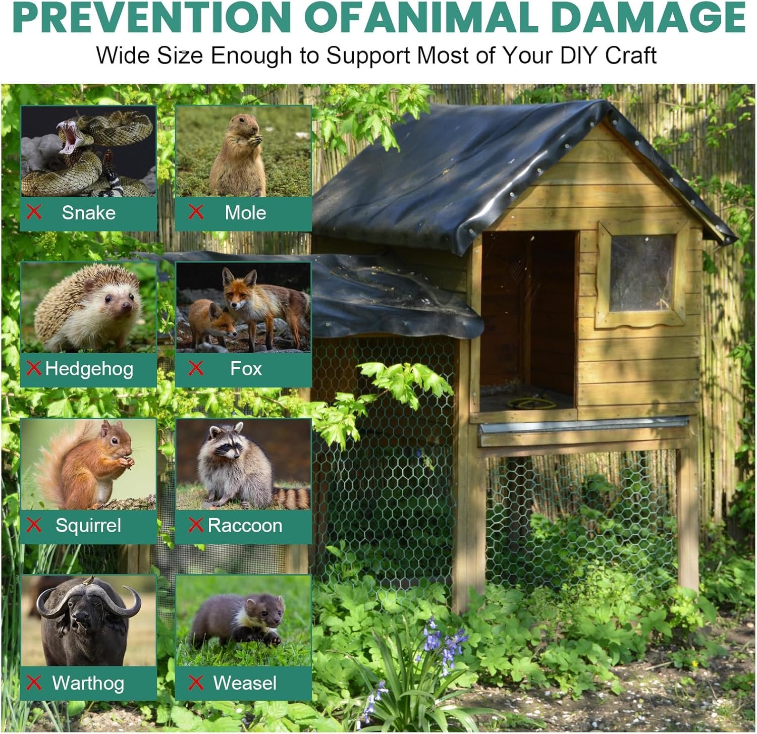 【Durable Material】Crafted from high-quality galvanized iron with a PVC coating, this chicken wire mesh offers excellent rust and corrosion resistance. The sturdy yet pliable construction ensures long-lasting performance, even in outdoor environments, providing reliable protection for your garden and poultry.