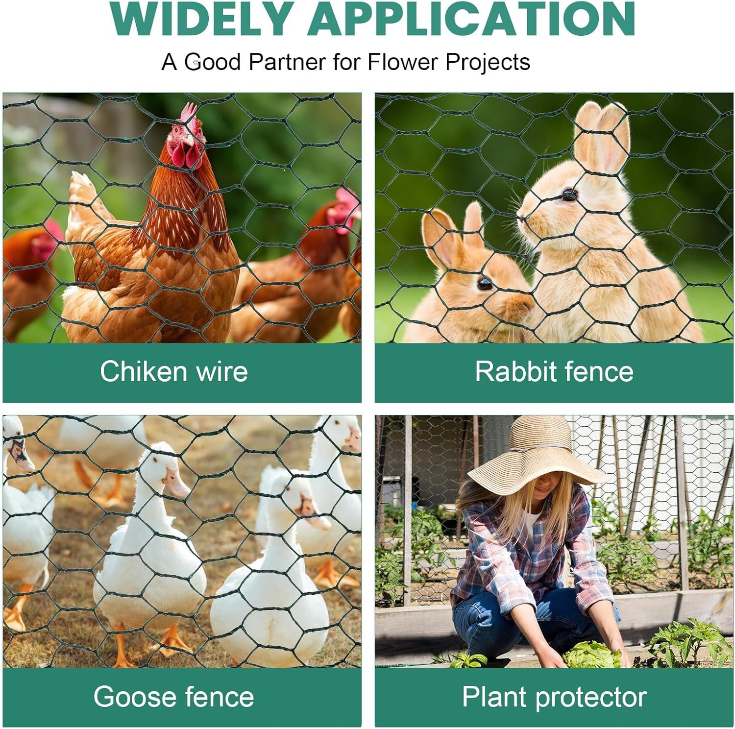 【Wide Application】Ideal for gardeners and crafters alike, this chicken wire mesh is suitable for protecting flower beds, vegetable gardens, and landscapes from various animals. Additionally, it serves as a versatile material for creating floral arrangements, pet enclosures, and decorative crafts.