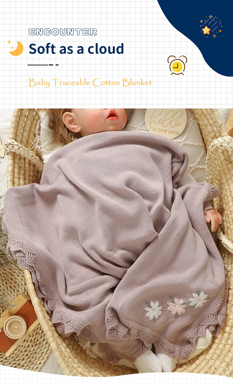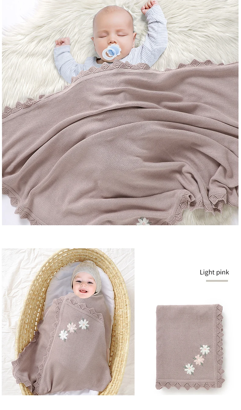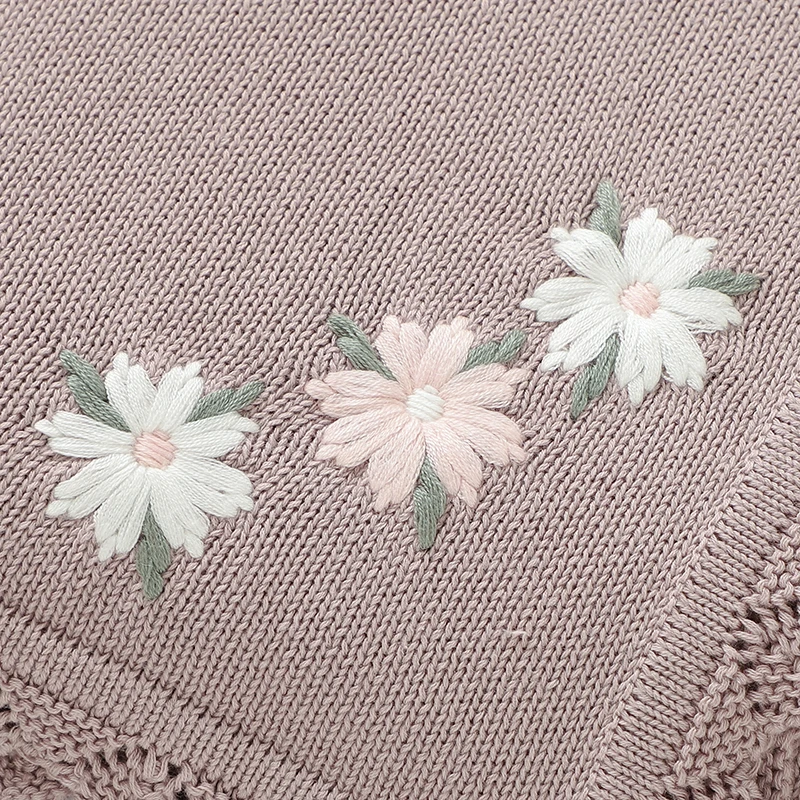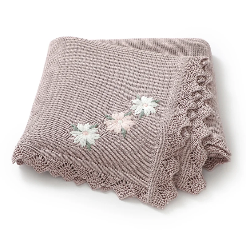 Floral Embroideried Baby Cotton Blankets Knitting Newborn 100*800cm Stroller Bedding Sleeping Covers Stuff Infant Receiving Mats