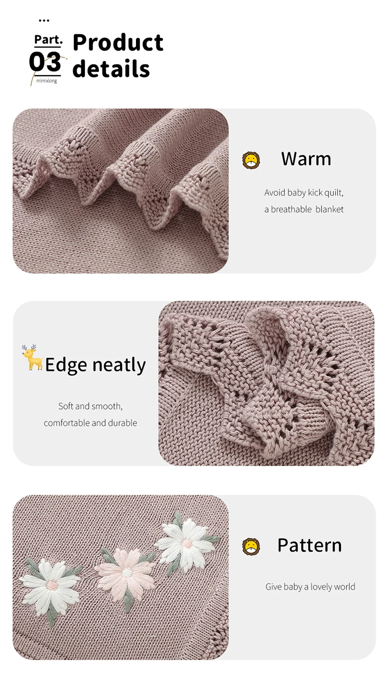 2 reviews for Floral Embroideried Baby Cotton Blankets Knitting Newborn 100*800cm Stroller Bedding Sleeping Covers Stuff Infant Receiving Mats