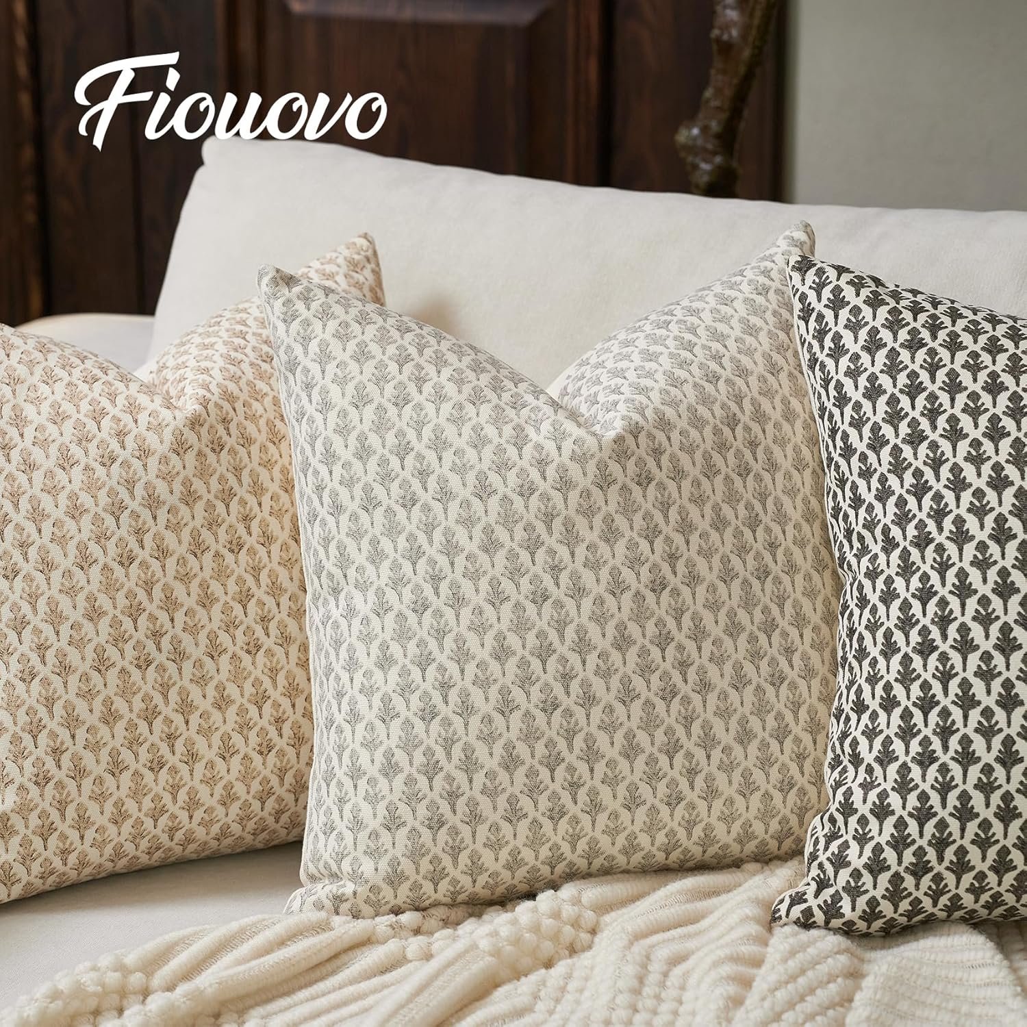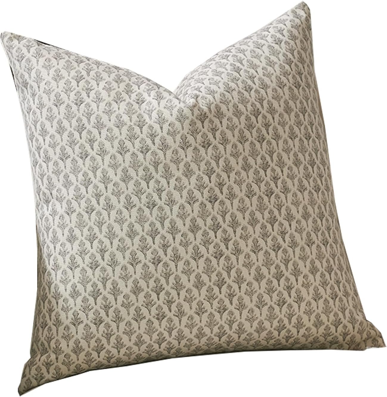 Floral Pillow Covers 18×18 Pillow Cover Block Print Couch Pillows for Living Room Decorative Neutral Accent Throw Pillow Covers, 1PC, Light Taupe
