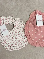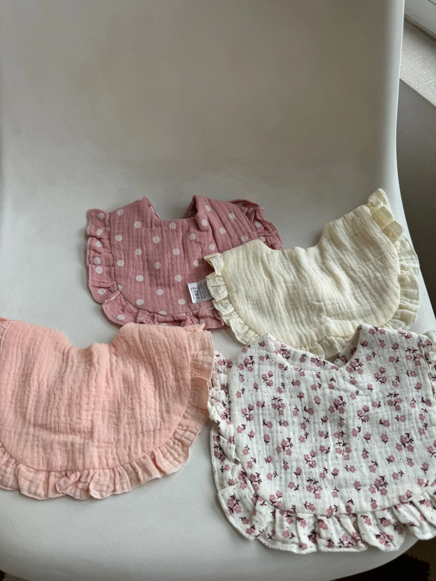 Flower Print Baby Bibs Adjustable Snap Saliva Towel Ruffled Edge Muslin Cotton Burp Cloths Rainbow A Grade Girls Feeding Scarf