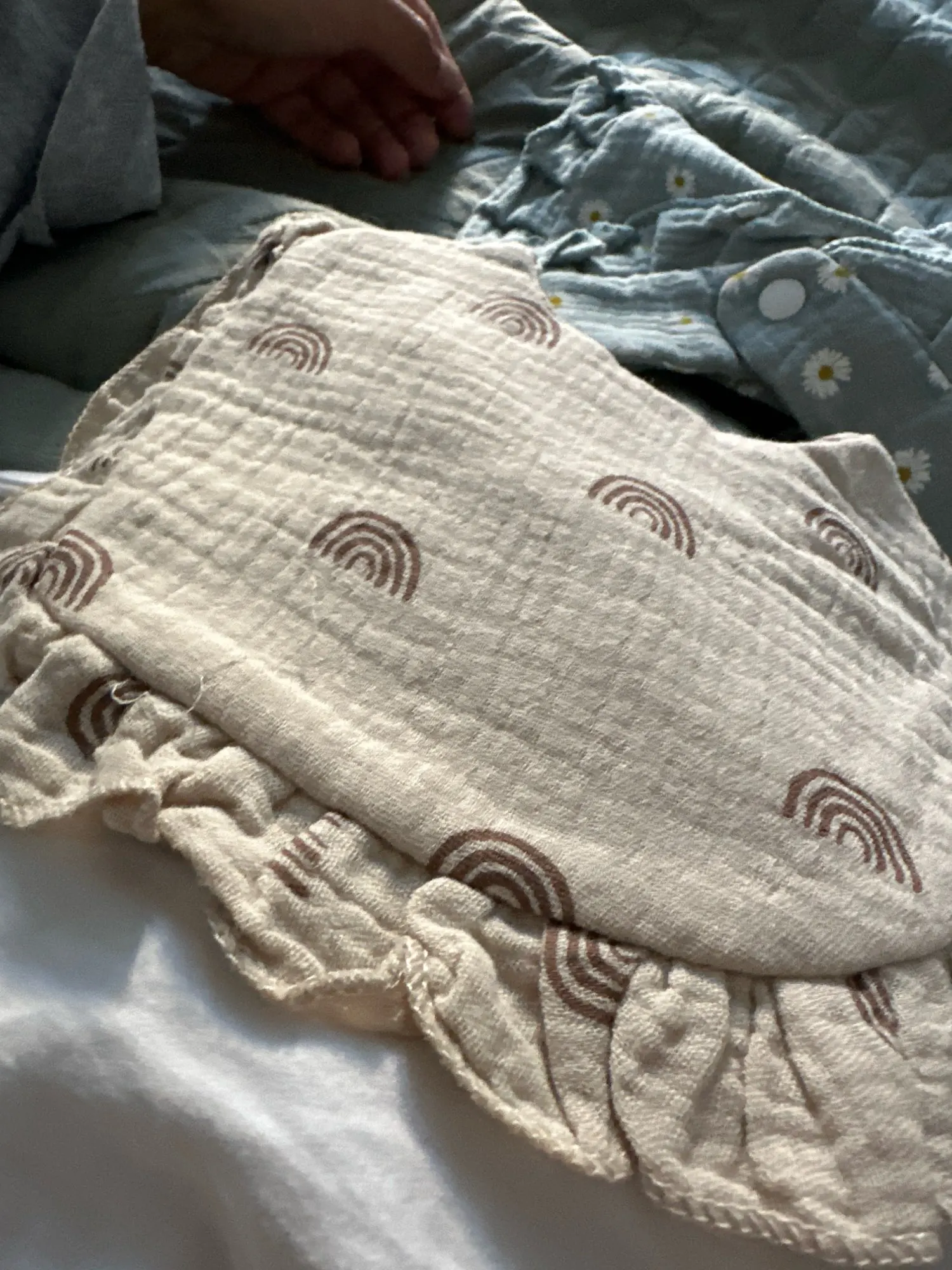 19 reviews for Flower Print Baby Bibs Adjustable Snap Saliva Towel Ruffled Edge Muslin Cotton Burp Cloths Rainbow A Grade Girls Feeding Scarf