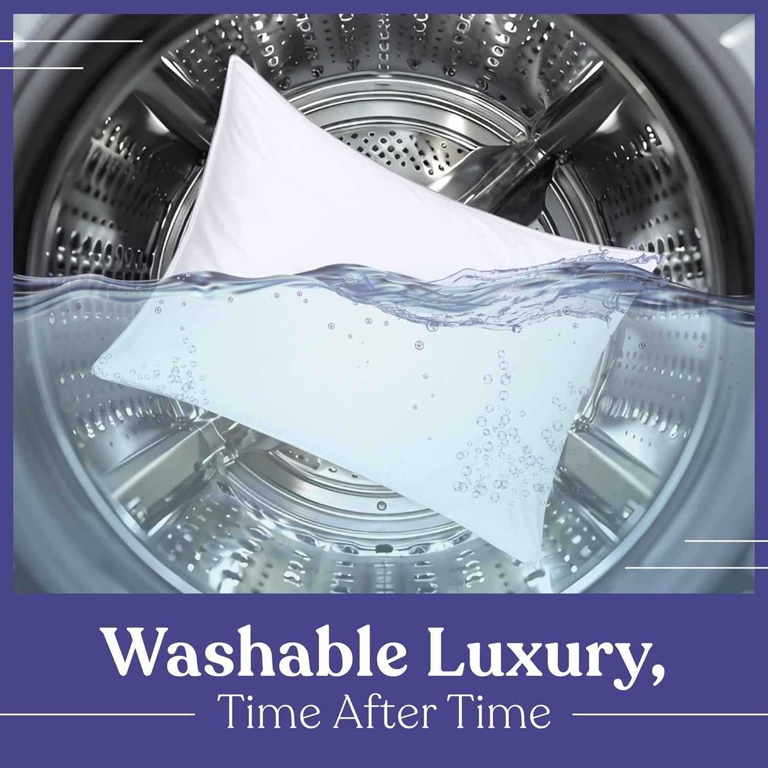 EFFORTLESS MAINTENANCE: Keep your pillows fresh and clean with minimal effort. These are machine-washable pillows, simply wash them in cold water with a gentle detergent and tumble dry on low with a few tennis or dryer balls to restore their fluffy, hotel-like feel.