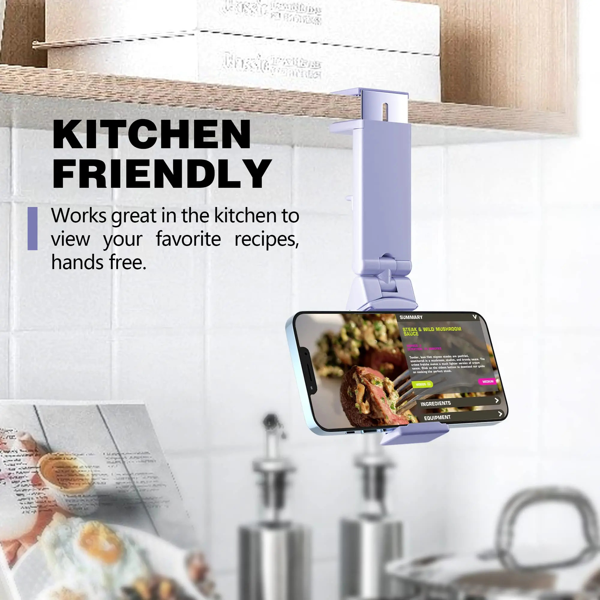 Free Your Hands Anywhere – The adjustable high quality spring-loaded clamp base fits thickness up to 1.5 inches. It can be clipped onto a desk, chair, cabinet, headboard, plane tray table or even luggage handle! Enjoy watching movies in the bedrooms, cooking in the kitchen, exercising in the gym, working in the office and even traveling on the road.
