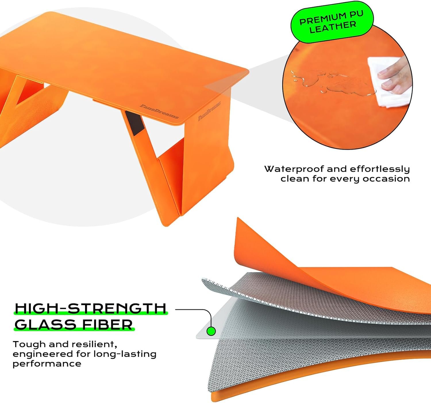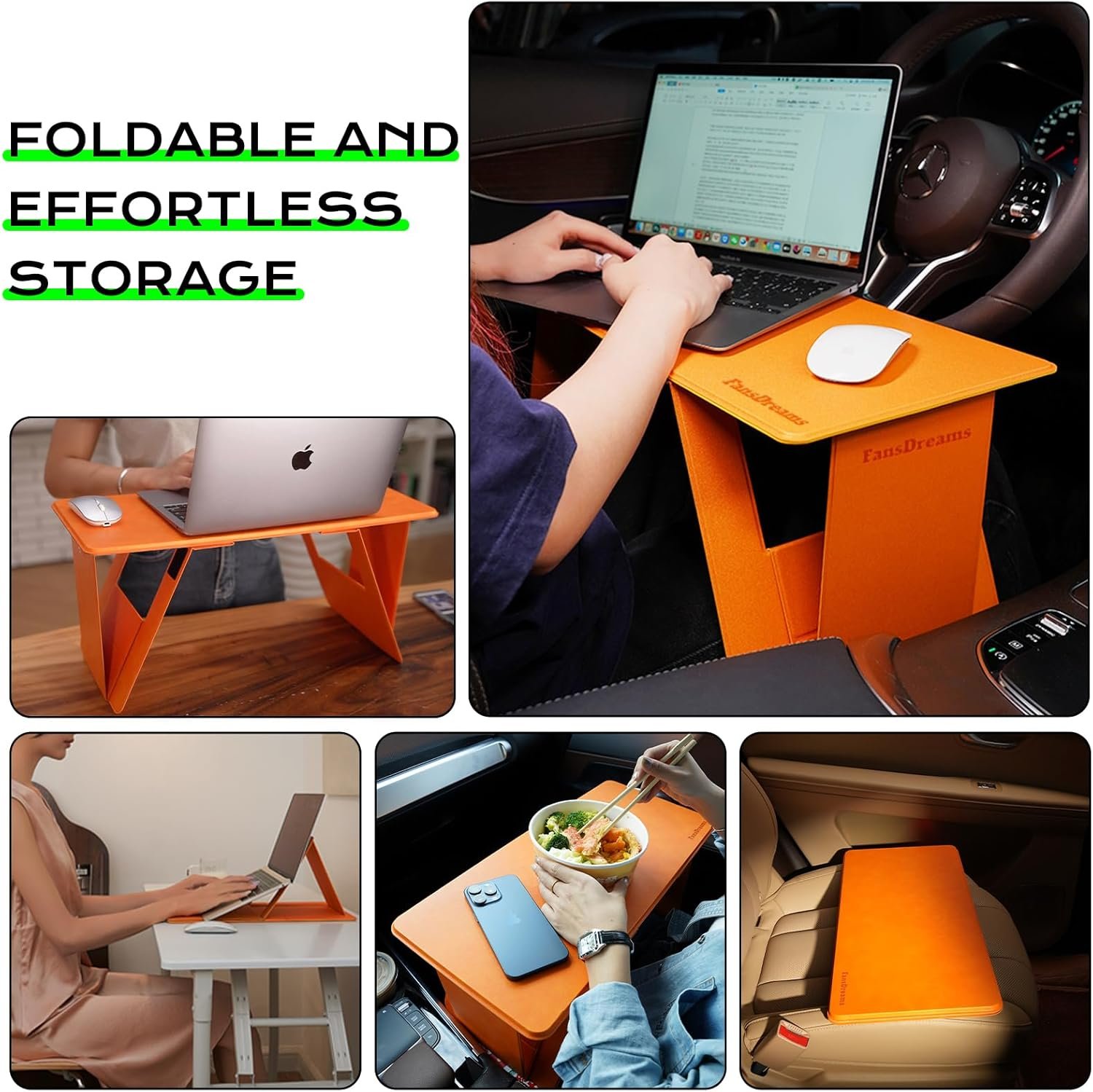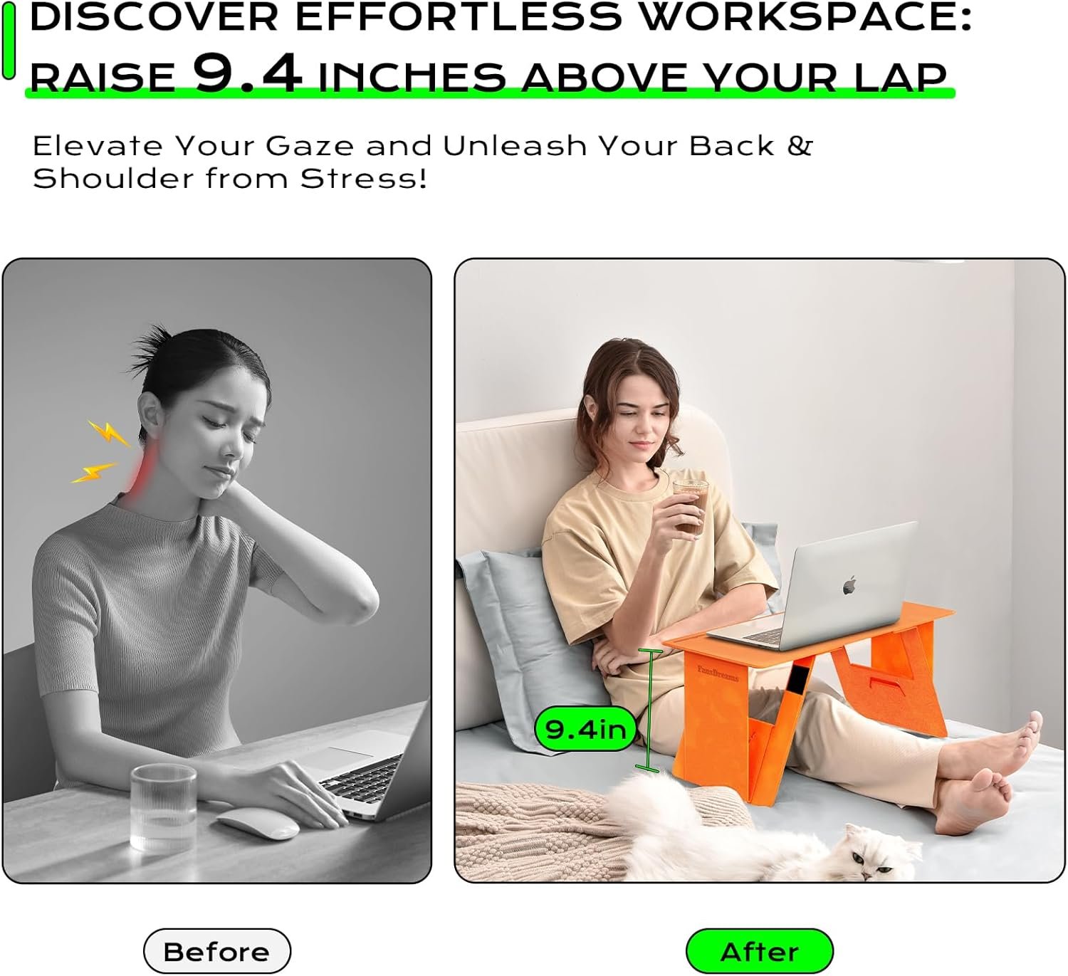 Foldable Laptop Desk Bed Computer Desk, FansDreams Pi Foldable and Portable Lap Desk, Portable Folding Lap Table, Standing Lightweight Travel Laptop Table for Study and Work (Orange, Standard)