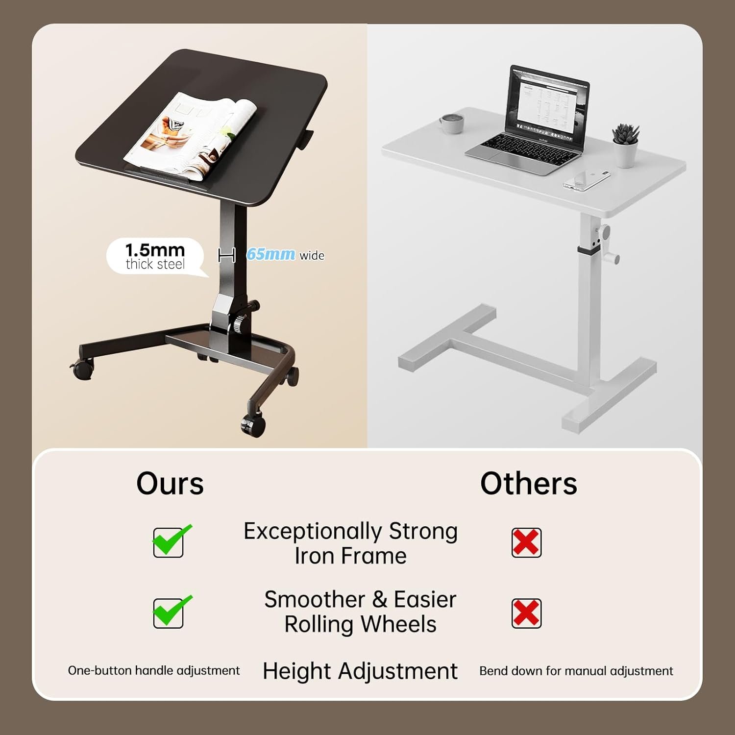 Ergonomic Design: Use our rolling laptop desk, say goodbye to long sitting and enjoy the benefits of the sit stand desk, stretch out your legs, better focus and more healthier