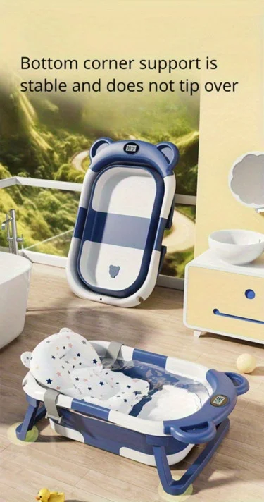 13 reviews for Folding Baby Bath Tub with Temperature Gauge and Cushion for 0-36 Months, Portable and Lightweight for Outdoor Bathing