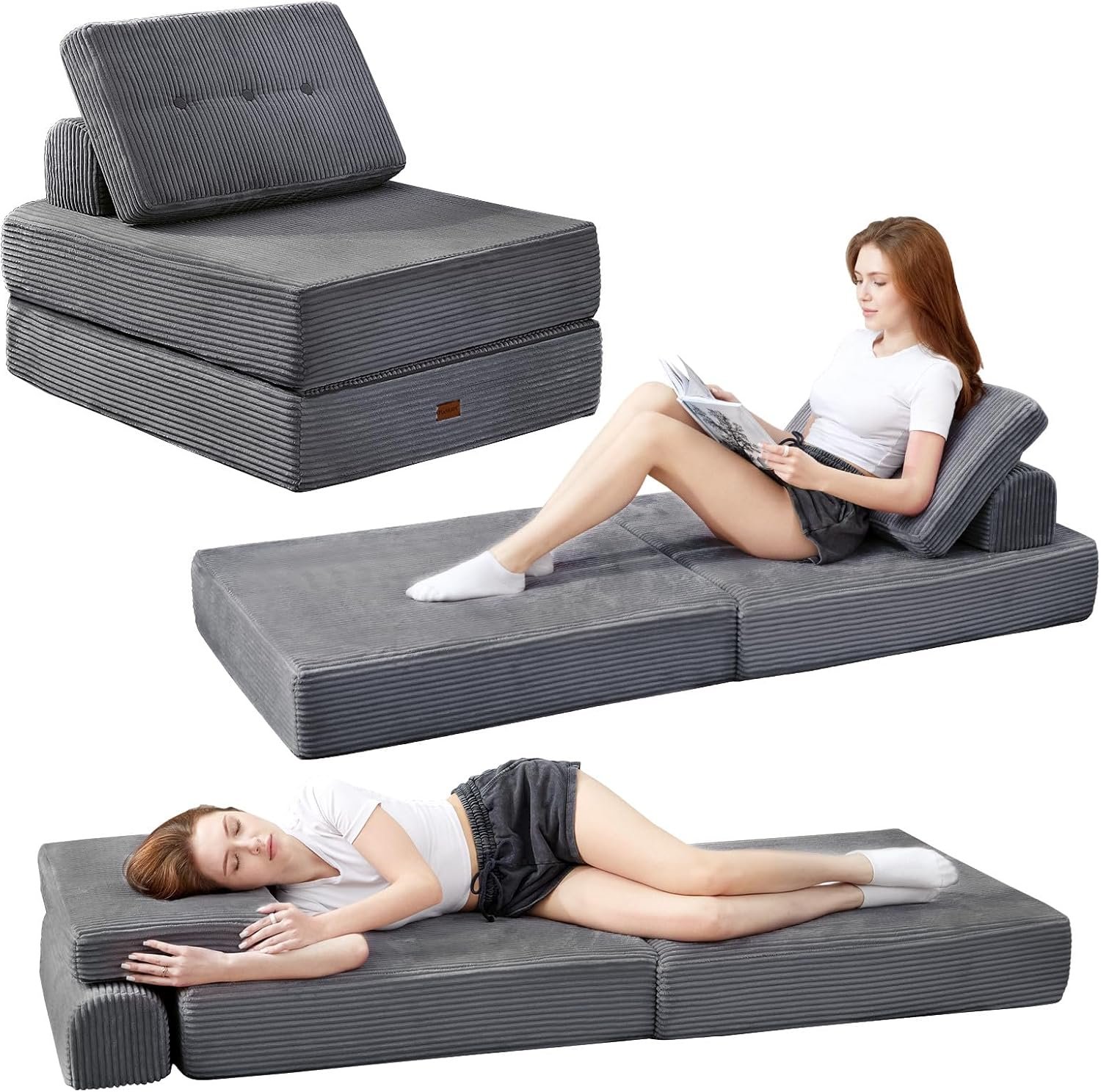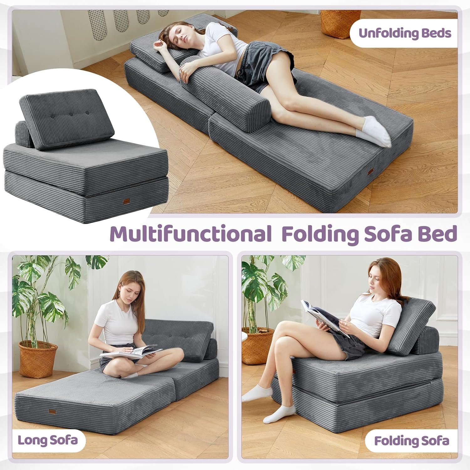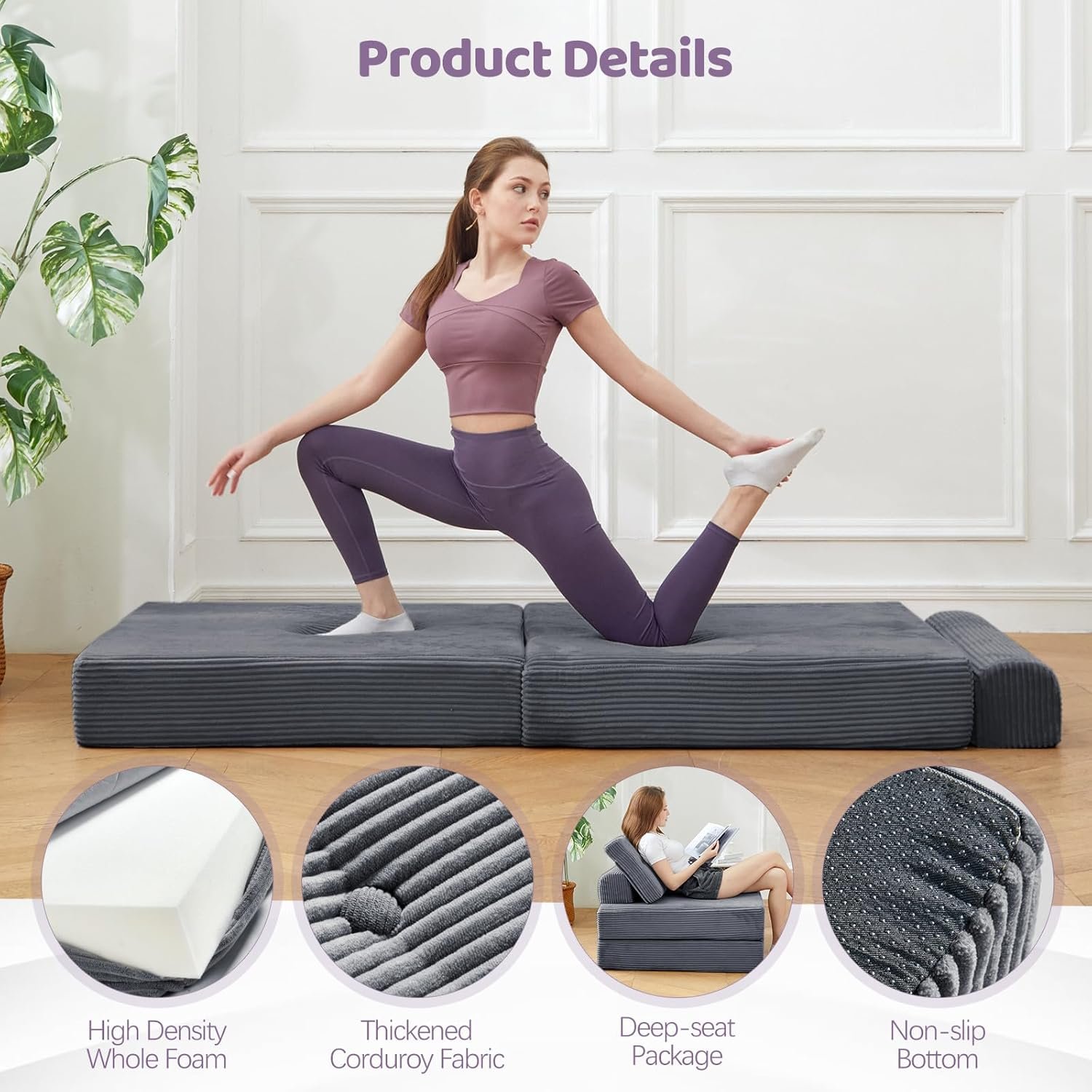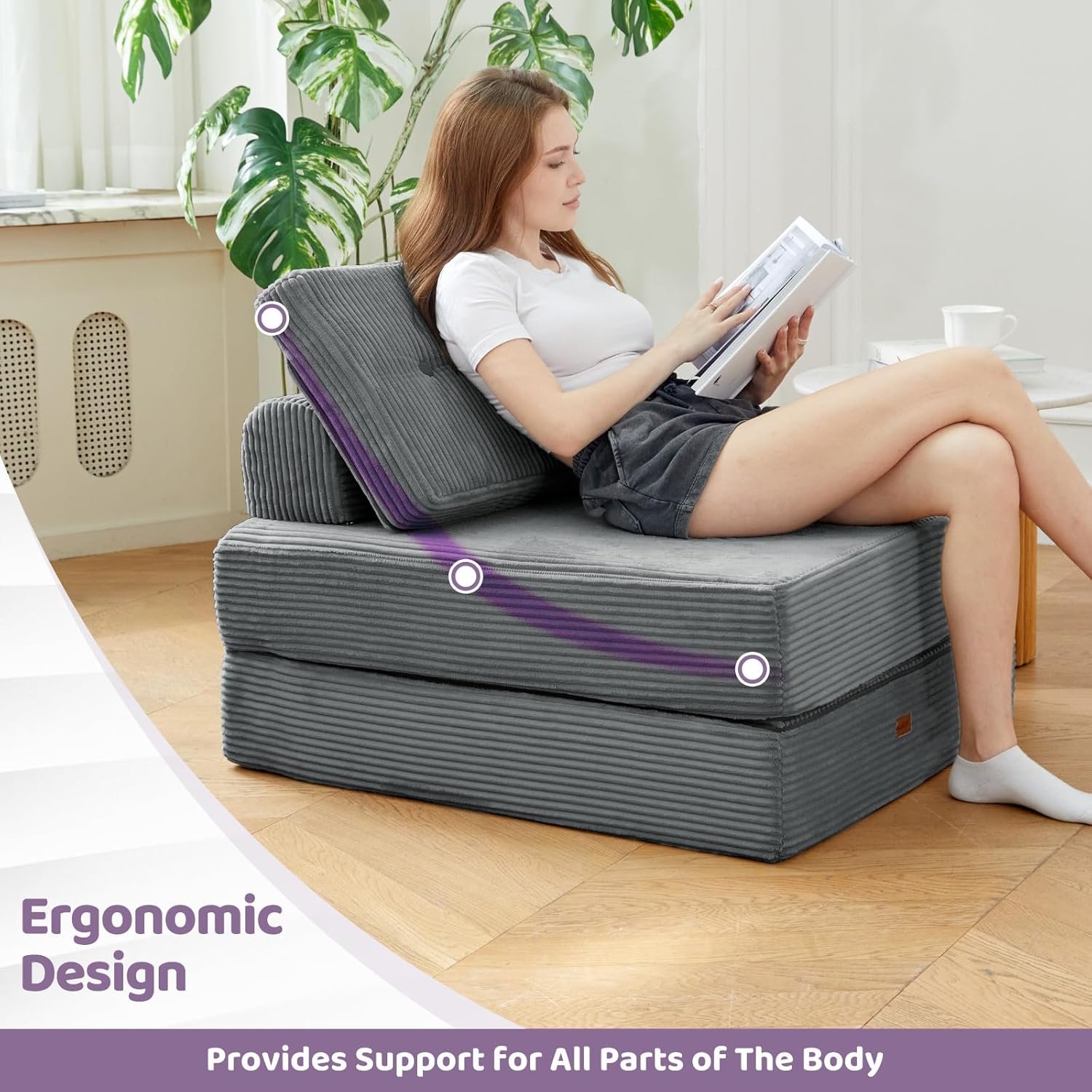 High-quality Fabric and Sponge: Our folding sofa outer cover is made of high-quality corduroy fabric, soft and snug, delicate touch, removable and washable. The folding sleeper sofa is made of whole high-density foam, rebounds quickly, and is not easily deformed,which is soft and even to ensure the best support.