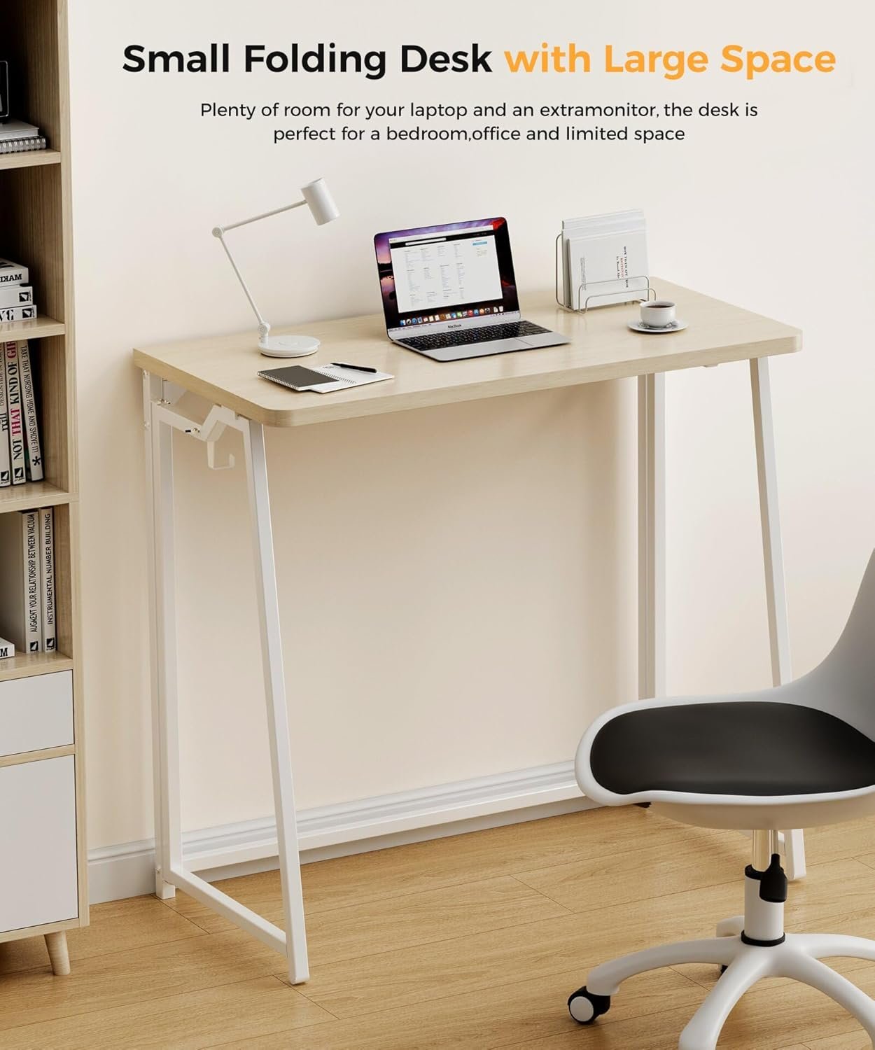 Folding Desk Small Foldable Desk for Small Space, 31.5 Inches Writing Computer Desks in Study, Home Office Foldable Office Desks for Bedroom, Oak