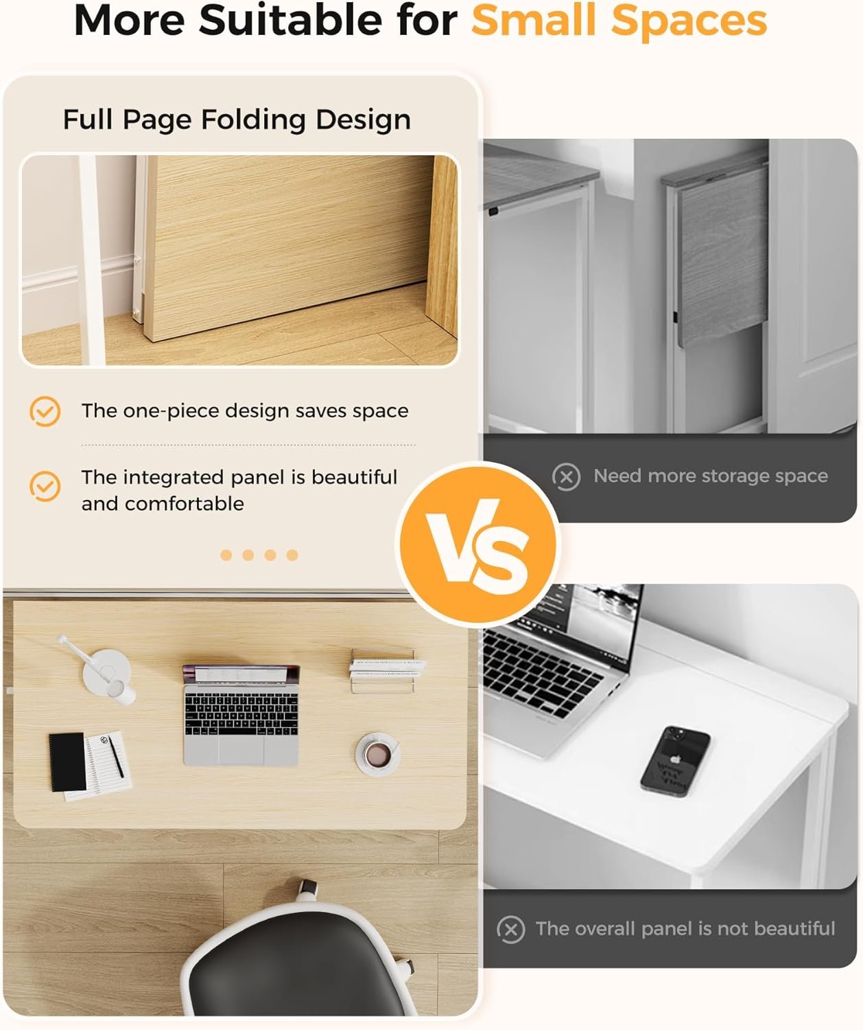 EASY TO STORE: the desktop adopts a new type of table board, which is not separated,The entire desktop can be folded directly for storage, the product size is 2.6 inches deep x 31.5 inches wide x 29.5inches when folded,It can be easily stored in corners, gaps, etc, when not in use to keep the room tidy