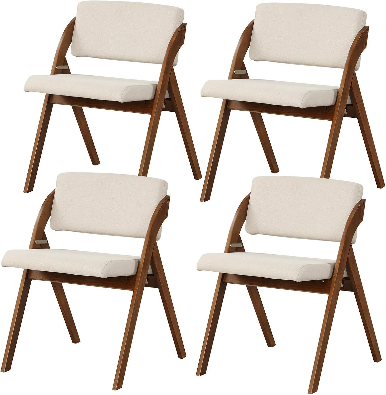 Folding Dining Chairs Set of 4, Farmhouse Upholstered Accent Chair with Non-Assembly Design, Padded Seat & Cushion Backrest, Portable Wood Kitchen Chairs for Party, Picnic & Home Office