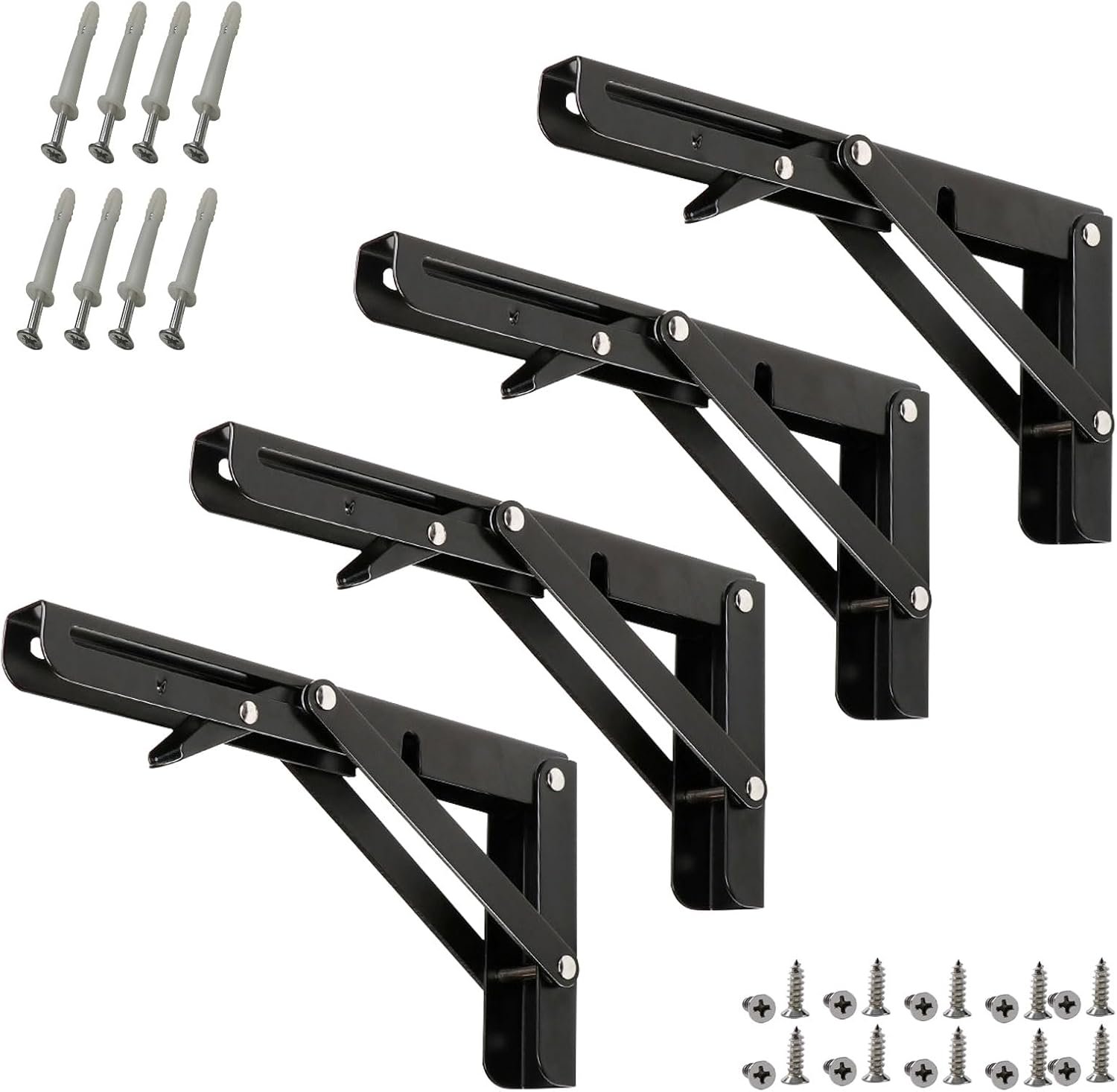 Folding Shelf Brackets 4 Pack – Wall Mounted Collapsible Triangle Heavy Duty 10″ Brackets for Floating Shelves/ Fold Down Shelf/ Table/ Bookshelf/ Kitchen/ Bathroom – Space Saving DIY Storage Solution
