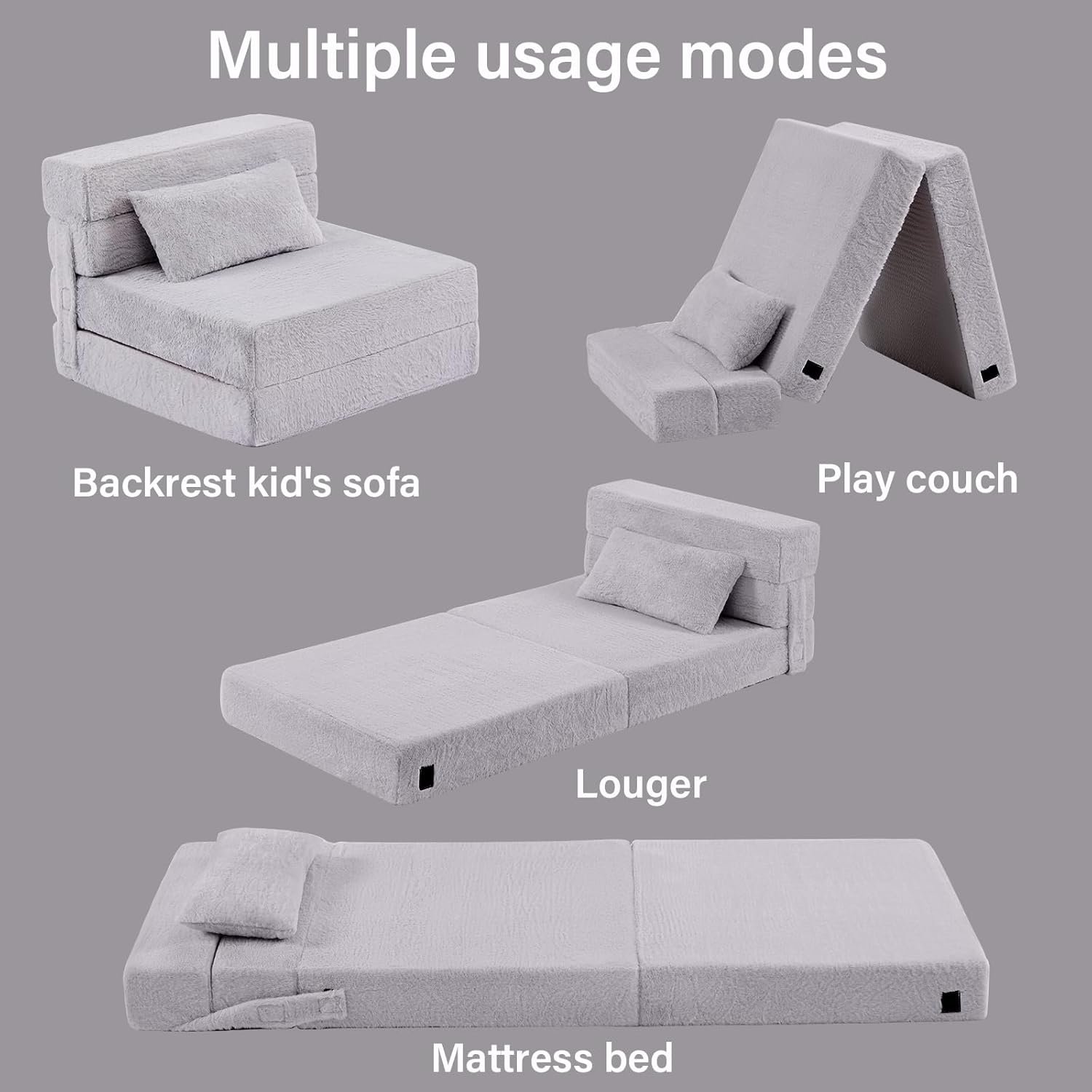 【Care Instruction】The muti-fold kids mattress’s cover is detachable and washable in the machine. But you need to mark each foam before washing for easy re-installation. Thanks to the fabric being soft and resistant to fading and shrinking, the kid couch sofa stays the same as the new one after washing. The foam kids couch will be an attractive sofa!