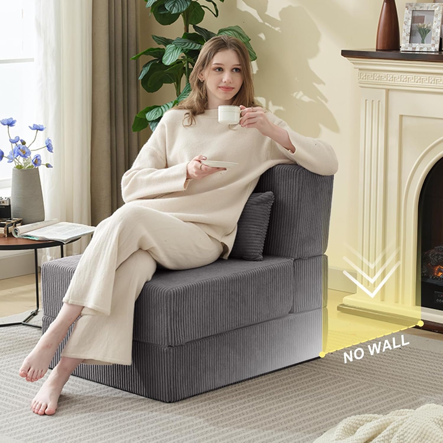 Folding Sofa Bed,Convertible Fold Out Couch,Portable Foldable Floor Mattress Sleeper Chair with Pillow,Adjustable Backrest Support,Lazy Sofa for Living Room,Single,Dark Grey
