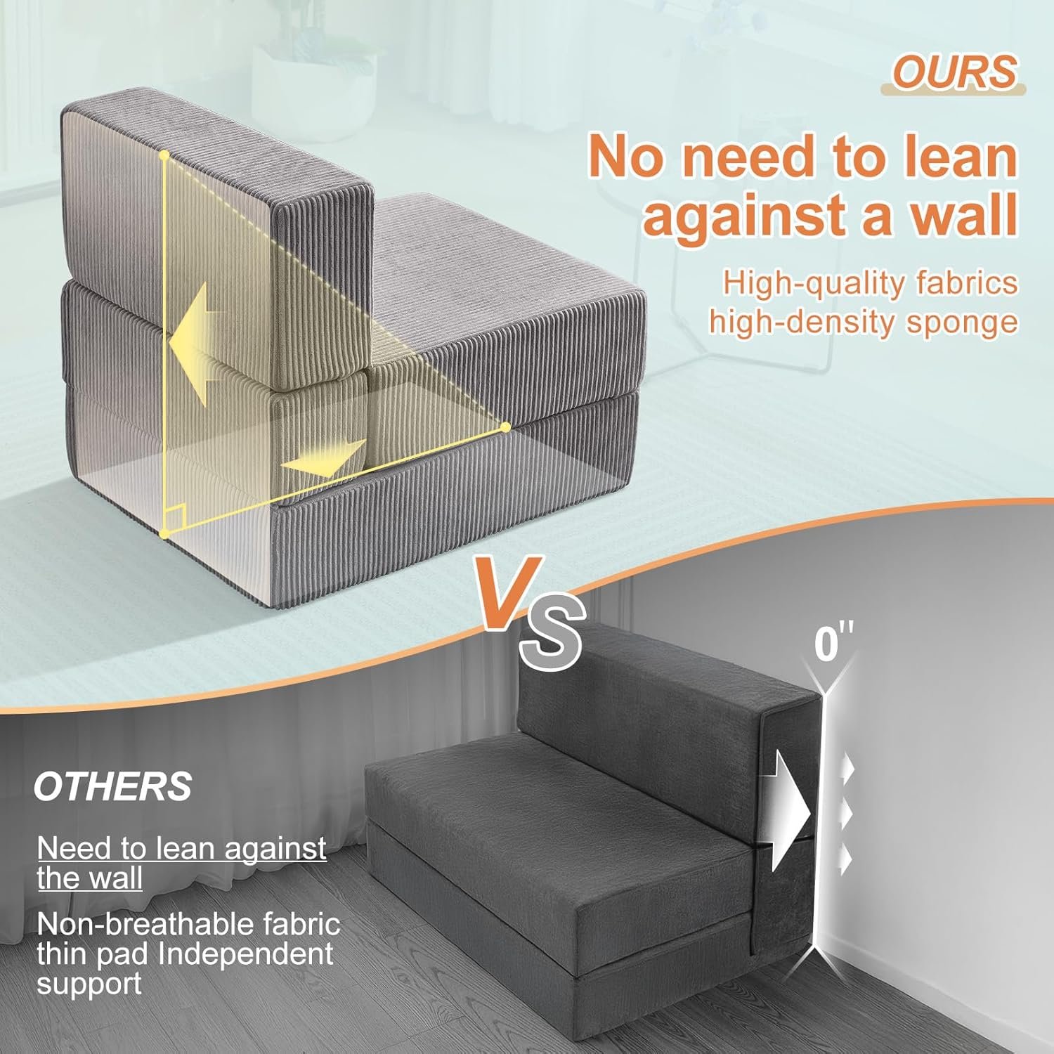Multifunctional Folding Sofa Bed: folding sofa bed has 8 forms to show, can be quickly converted into a folding chair bed, recliner or folded into a guest sleeper mattress, to meet your different needs. Foldable design to save your space, folded up during the day into a comfortable sofa, the night unfolded is a very comfortable bed, suitable for reading, watching TV, playing video games, yoga or nap.