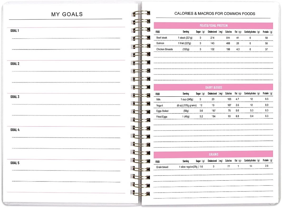 What You Get – 6.1″ x 8.5″ food and fitness journal, Spiral, hardcover, 132 pages(61 sheets)