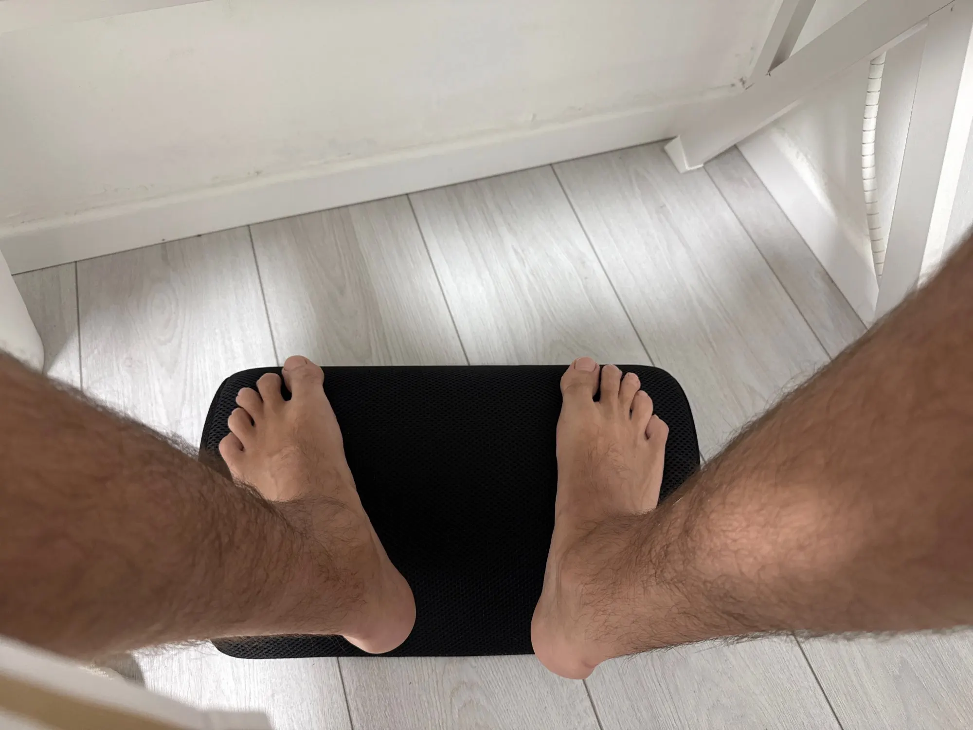 An excellent addition to my setup. Extremely comfortable and quite large, so my feet fit perfectly on it. I literally haven’t had any more spinal problems with it. Breathable fabric, so you’re unlikely to sweat your feet on it. The cover is removable, so it will be a huge advantage if it gets too dirty one day; I can wash it without any problems.