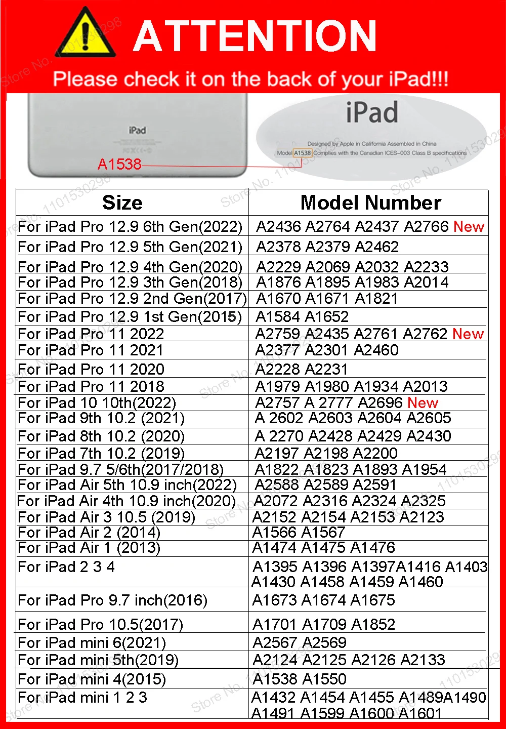 Applicable Models: Please choose the right model for your iPad,Please choose the right model for your iPad depends on below !