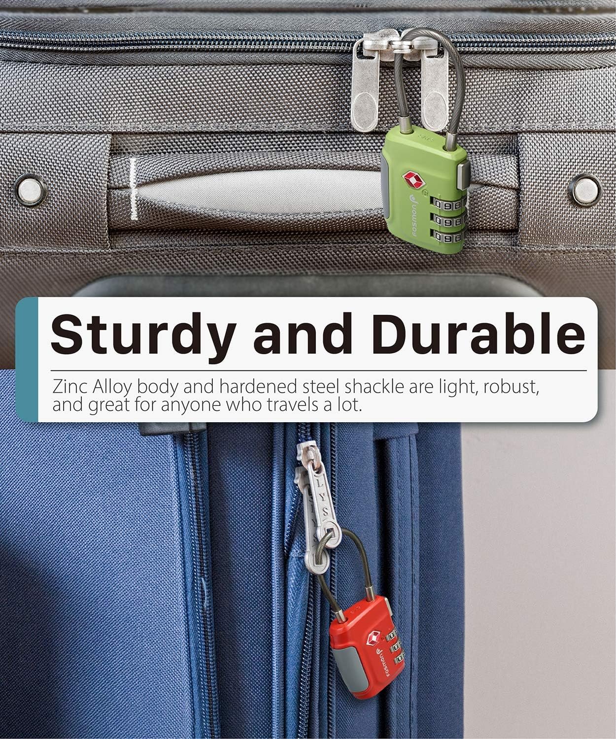 [TSA ACCEPTED LUGGAGE LOCKS] The Fosmon TSA lock allows your luggage to be checked without damage to the lock. The TSA agent will open and relock your luggage after inspection, giving you peace of mind for the whole trip.
