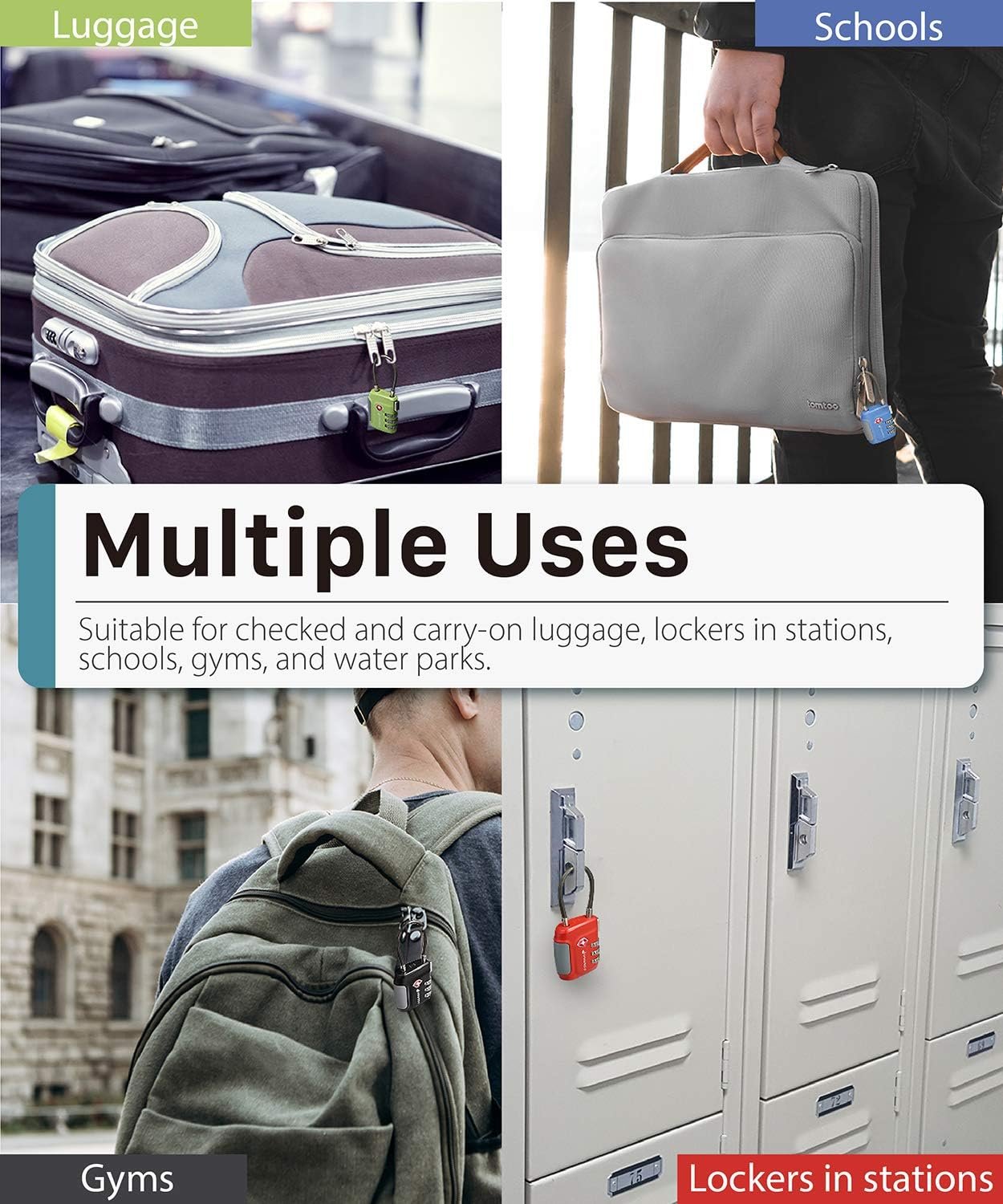 In addition to travel, this TSA accepted lock can be used for various lockers, such as hostels, gym, water parks, gun cases, etc. for safety and security.