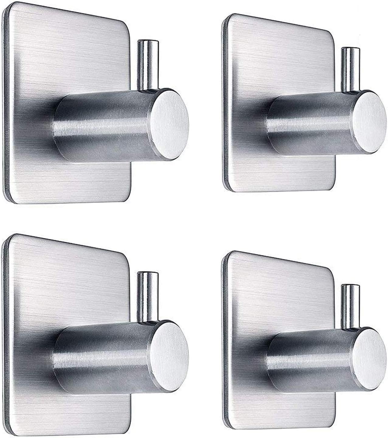 Fotosnow Adhesive Towel Hooks Heavy Duty Wall Hooks Waterproof Stainless Steel Hanger for Hanging Coat, Hat, Towel Robe Hook Rack Wall Mount- Bathroom and Bedroom 4-Packs