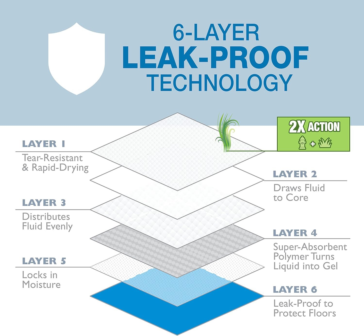 6-LAYER LEAK-PROOF TECHNOLOGY – Exclusive Floor Armor Leak-Proof System draws fluid to the core and locks in moisture