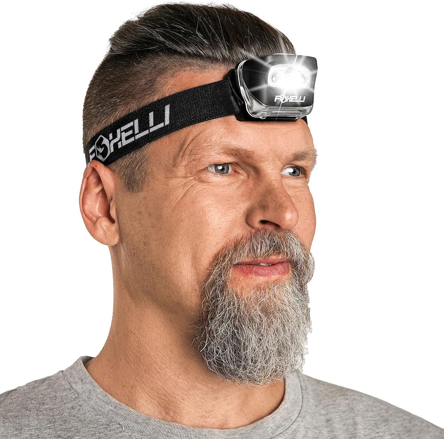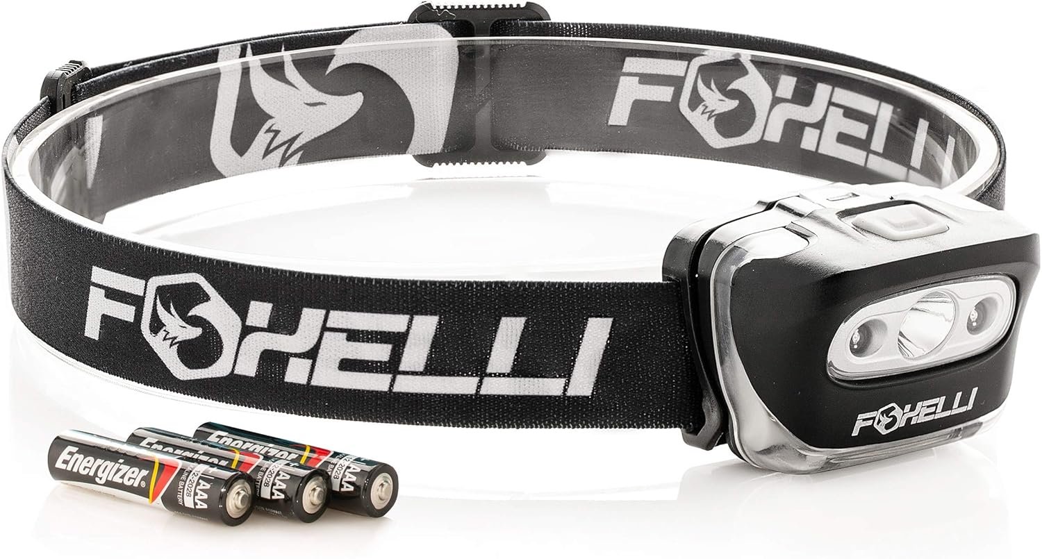 Foxelli LED Headlamp Flashlight for Adults & Kids, Running, Camping, Hiking Head Lamp with White & Red Light, Comfortable Headband, Lightweight & Waterproof, 3 AAA Batteries