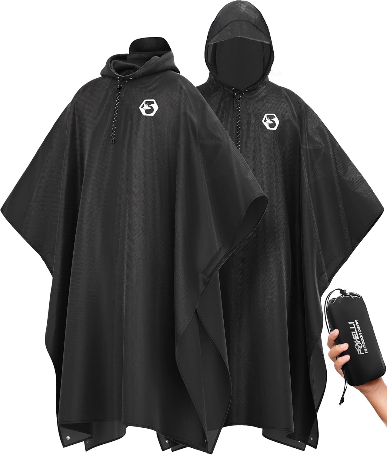 Foxelli Rain Poncho for Adults – Extra Long Reusable Waterproof Raincoat with Hood, Lightweight for Hiking, Camping, Outdoors