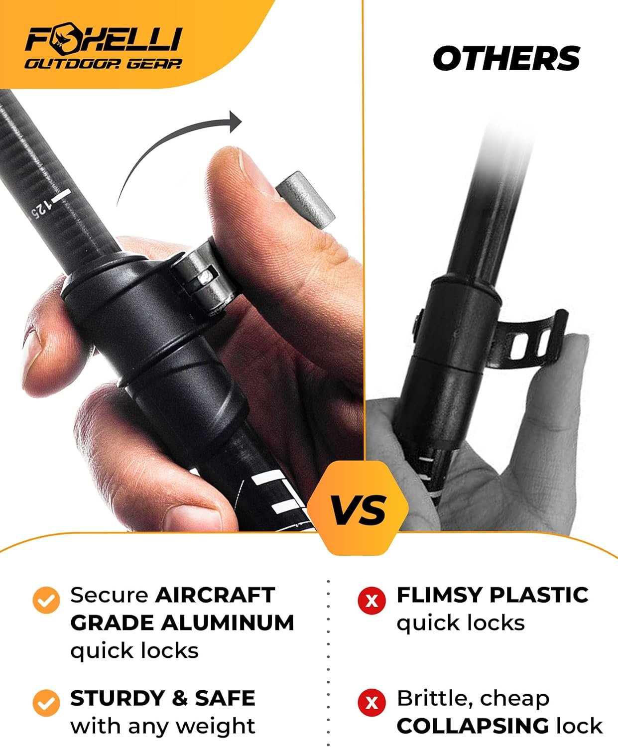 Foxelli Trekking Poles – Lightweight Collapsible Aircraft Grade Aluminum Hiking Poles with Cork Grips Quick Locks & All-Terrain Accessories – Pair of 2