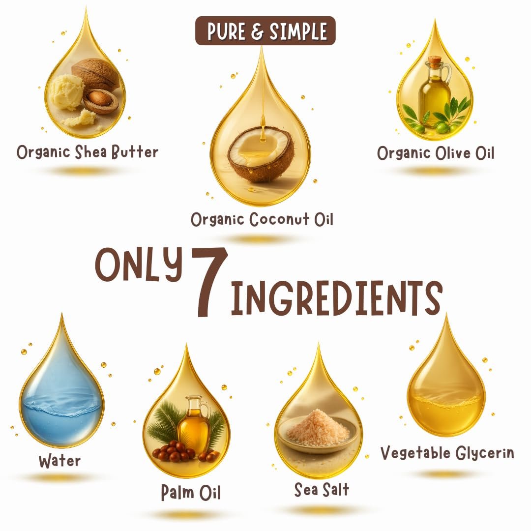 VEGAN, SLS-FREE & MINIMAL INGREDIENTS: Made with only 7 carefully selected ingredients, this vegan bar soap is free from SLS/SLES, synthetic detergents, foaming agents, fillers, and unnecessary chemicals—designed for gentle, everyday cleansing.