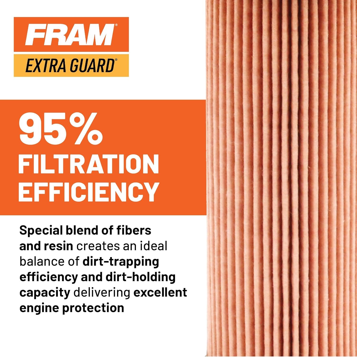 A special blend of fibers and resin creates a proprietary filter media that captures 95% of dirt particles that can cause harmful engine wear