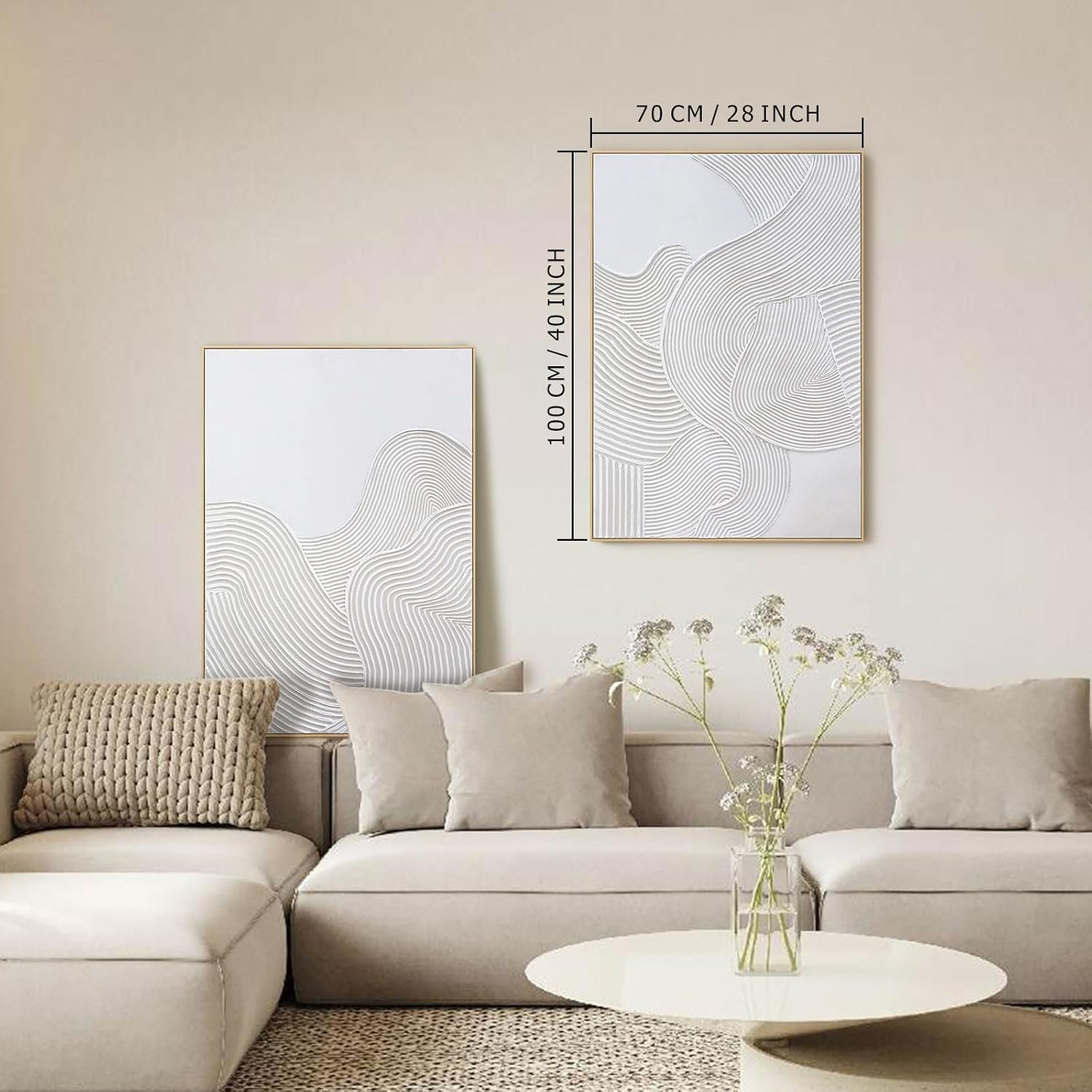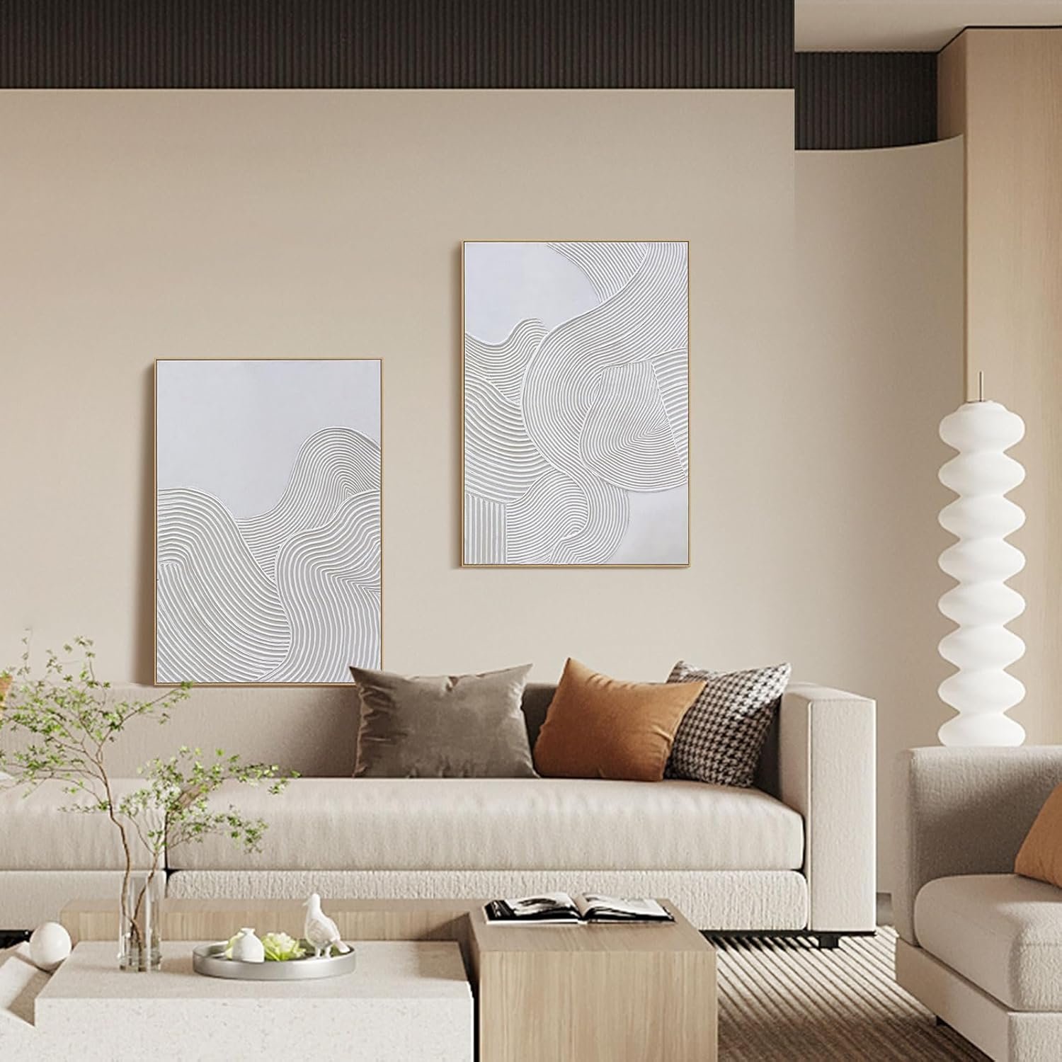 Framed Neutral Abstract Wall-Art Painting – Large Abstract Canvas Wall Decor 3D Curve Illustrations Hand painting for Living Room, Bedroom, Office – 2 Piece 28 x 40 Inch, Ready to Hang
