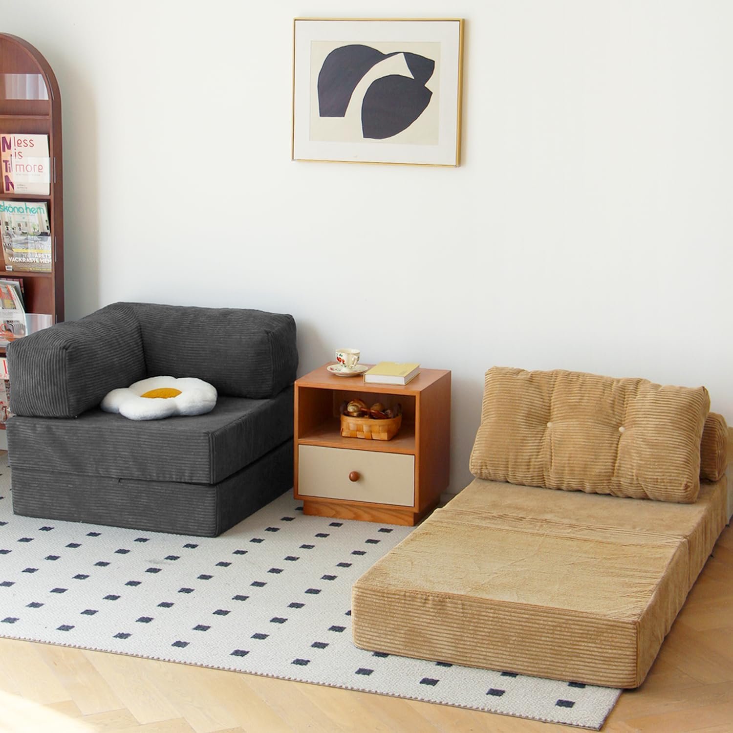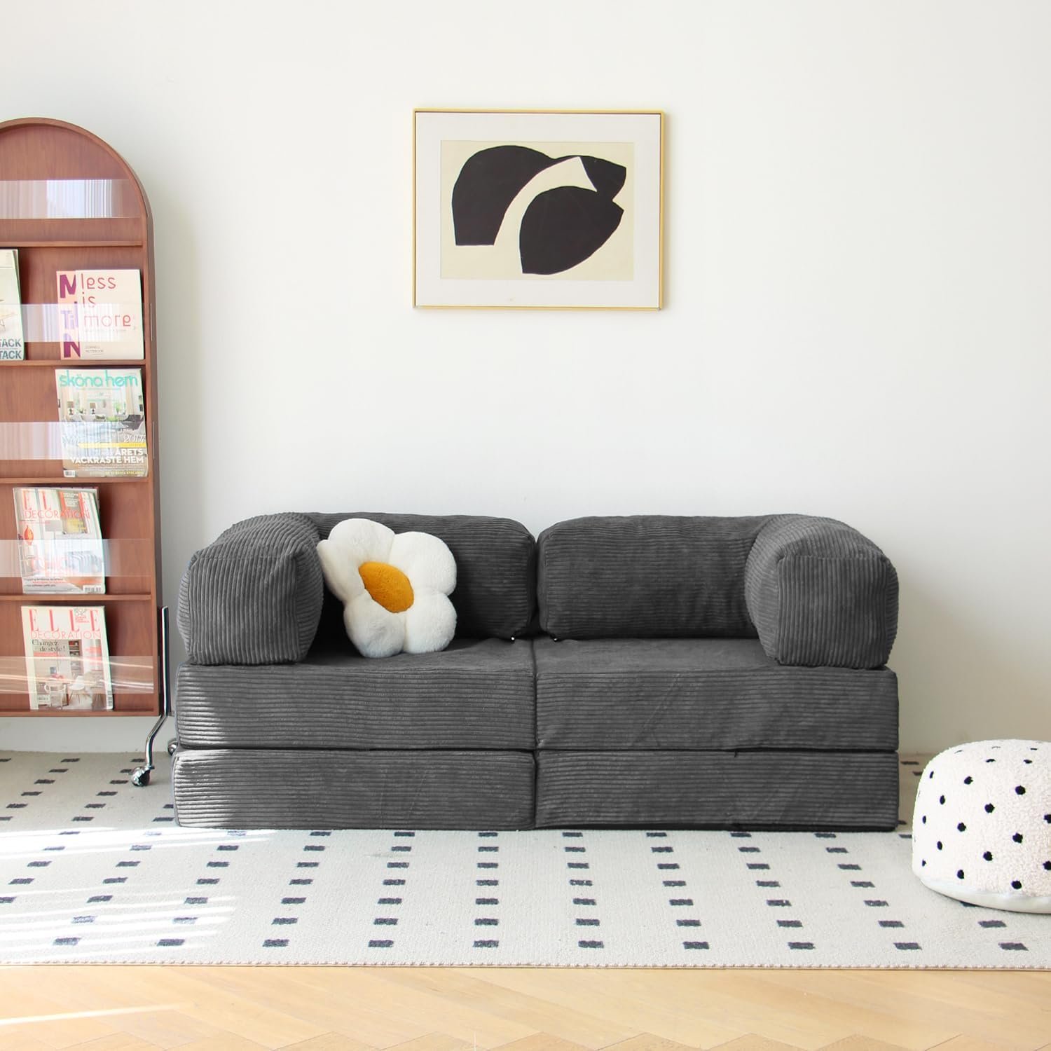 Ship Compressed: The floor sleeper sofa chair is shipped compressed and will quickly expand right after you open the package. Simply cut the package open and enjoy the awesome bean bag chair. Please let the chair rest for 27 hours to let the air into the foam.